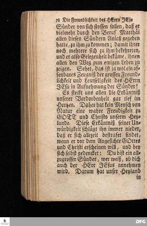 Die Freundlichkeit des HErrn JESU in Aufnehmung der Sünder / Am Tag des Apostels Matthäi 1717. Aus dem ordentlichen Evangelio Matth.IX, 9--13. In der Fürstl.Nassauischen Residentz Idstein bey der damaligen Durchreise in einer auf Verlangen gehaltenen Predigt vorgestellet von August Hermann Francken. [1720]