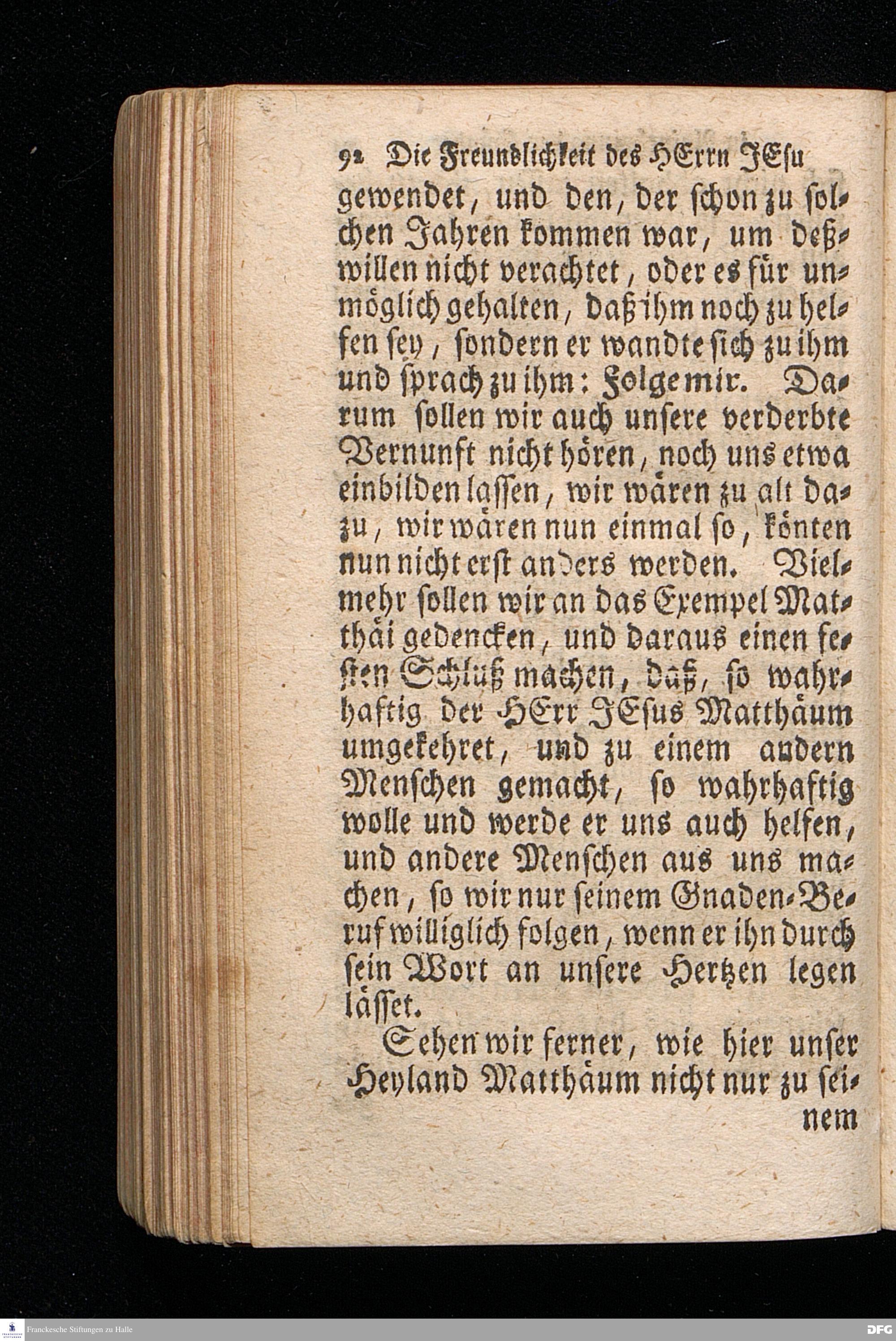 Die Freundlichkeit des HErrn JESU in Aufnehmung der Sünder / Am Tag des Apostels Matthäi 1717. Aus dem ordentlichen Evangelio Matth.IX, 9--13. In der Fürstl.Nassauischen Residentz Idstein bey der damaligen Durchreise in einer auf Verlangen gehaltenen Predigt vorgestellet von August Hermann Francken. [1720]