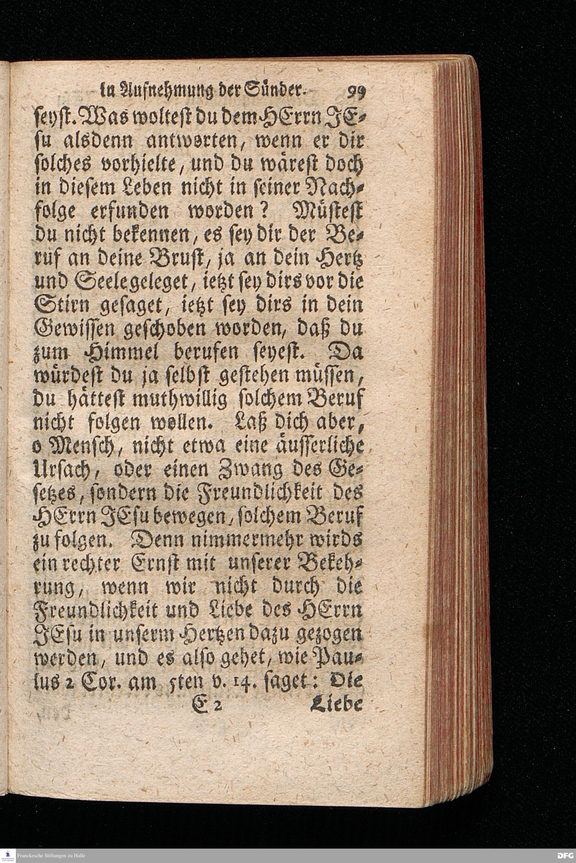 Die Freundlichkeit des HErrn JESU in Aufnehmung der Sünder / Am Tag des Apostels Matthäi 1717. Aus dem ordentlichen Evangelio Matth.IX, 9--13. In der Fürstl.Nassauischen Residentz Idstein bey der damaligen Durchreise in einer auf Verlangen gehaltenen Predigt vorgestellet von August Hermann Francken. [1720]