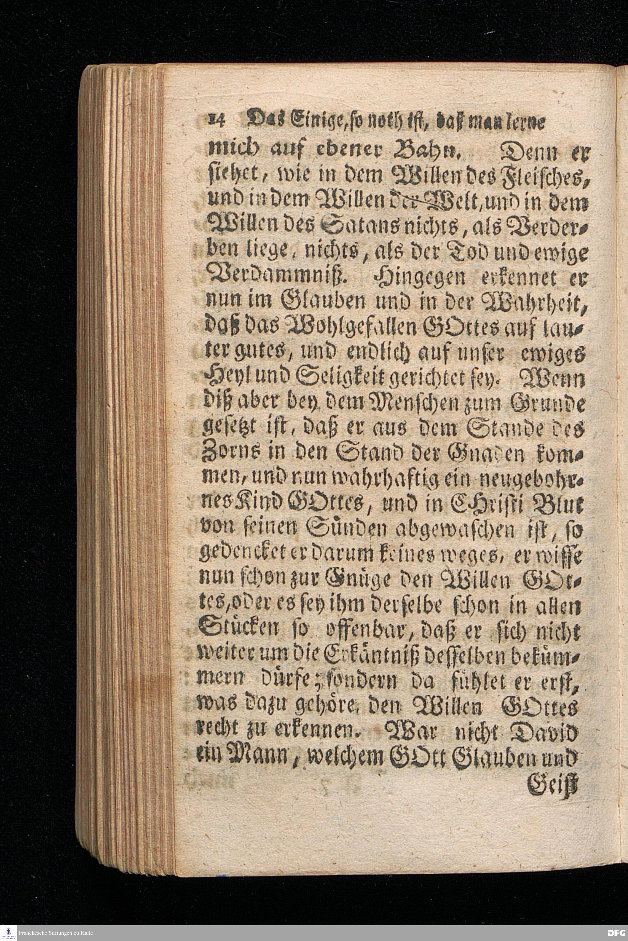 Das Einige, so noth ist, daß man lerne thun nach dem Wohlgefallen GOttes, In einer Am Sonntage Cantate 1721. aus den Worten Ps.143,10. Lehre mich thun nach deinem Wohlgefallen: denn du bist mein GOtt. Dein guter Geist führe mich auf ebener Bahn; Mit Genehmhaltung der Hochlöbl.Theol.Facultät zu Jena in der Collegen=Kirche gehaltenen Predigt vorgestellet von August Herr[!]mann Francken, S.Th.Prof.Past.Vlr.& Gymn.Schol. Andere Auflage. HALLE, in Verlegung des Waysenhauses. 1724.