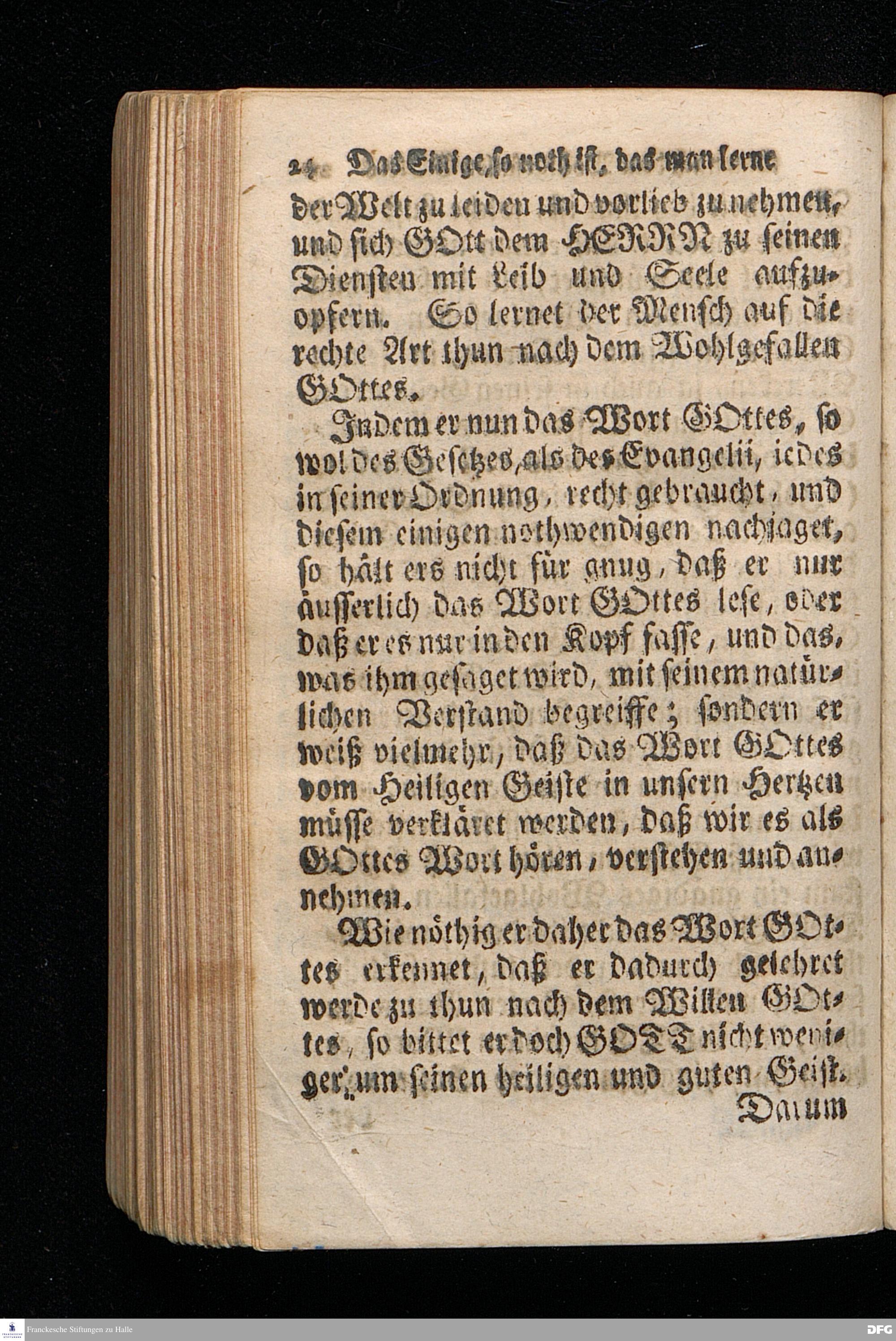 Das Einige, so noth ist, daß man lerne thun nach dem Wohlgefallen GOttes, In einer Am Sonntage Cantate 1721. aus den Worten Ps.143,10. Lehre mich thun nach deinem Wohlgefallen: denn du bist mein GOtt. Dein guter Geist führe mich auf ebener Bahn; Mit Genehmhaltung der Hochlöbl.Theol.Facultät zu Jena in der Collegen=Kirche gehaltenen Predigt vorgestellet von August Herr[!]mann Francken, S.Th.Prof.Past.Vlr.& Gymn.Schol. Andere Auflage. HALLE, in Verlegung des Waysenhauses. 1724.