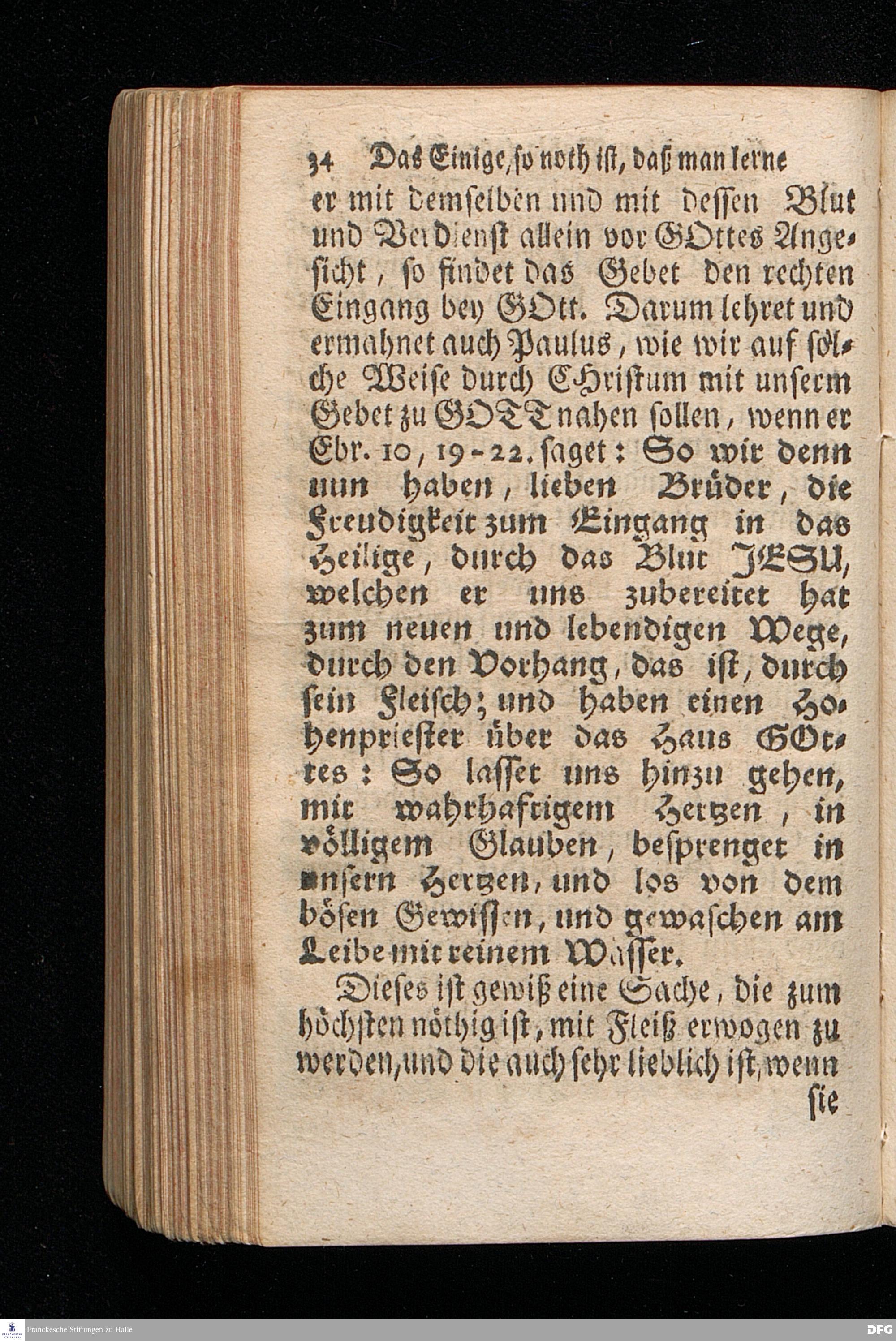 Das Einige, so noth ist, daß man lerne thun nach dem Wohlgefallen GOttes, In einer Am Sonntage Cantate 1721. aus den Worten Ps.143,10. Lehre mich thun nach deinem Wohlgefallen: denn du bist mein GOtt. Dein guter Geist führe mich auf ebener Bahn; Mit Genehmhaltung der Hochlöbl.Theol.Facultät zu Jena in der Collegen=Kirche gehaltenen Predigt vorgestellet von August Herr[!]mann Francken, S.Th.Prof.Past.Vlr.& Gymn.Schol. Andere Auflage. HALLE, in Verlegung des Waysenhauses. 1724.