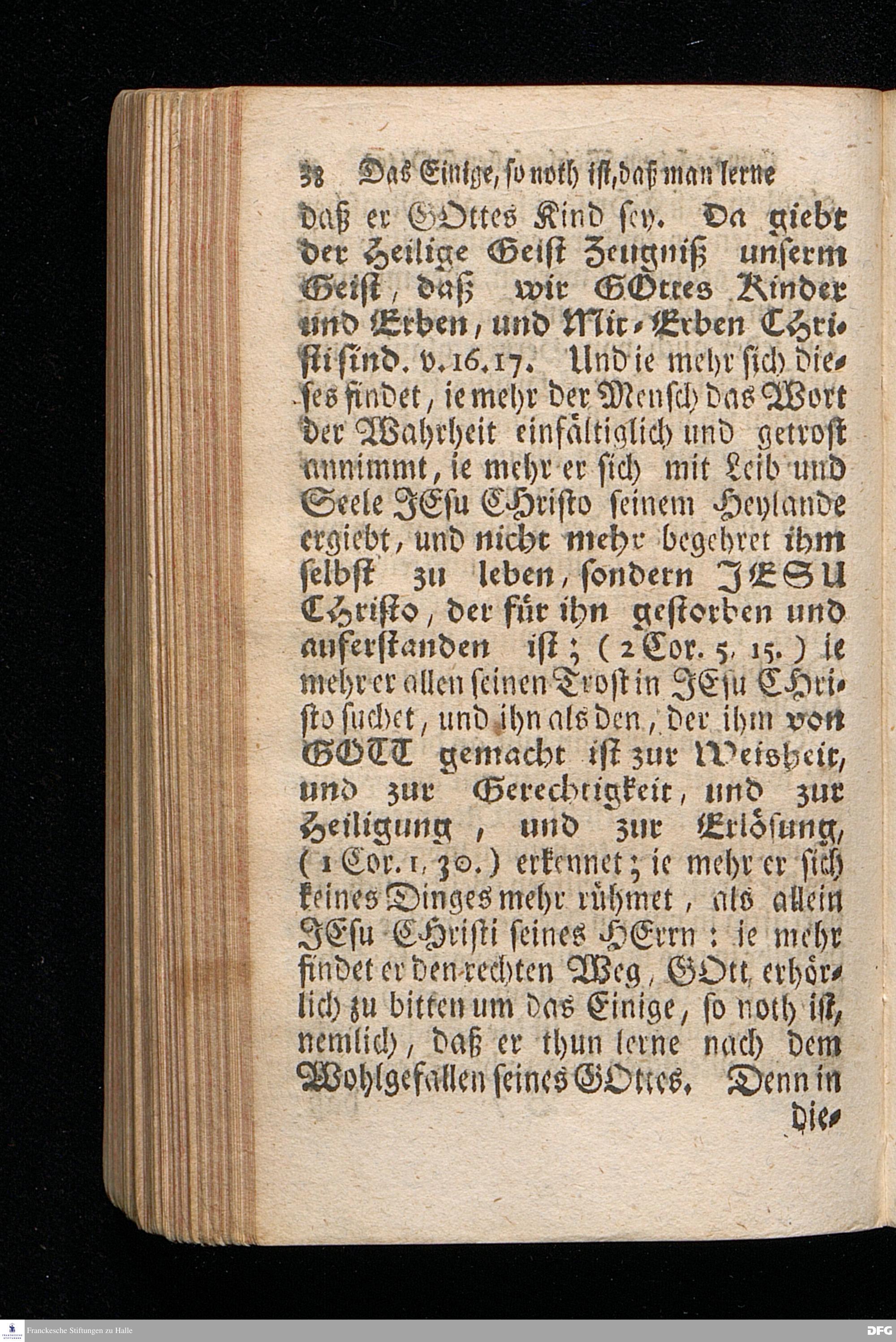 Das Einige, so noth ist, daß man lerne thun nach dem Wohlgefallen GOttes, In einer Am Sonntage Cantate 1721. aus den Worten Ps.143,10. Lehre mich thun nach deinem Wohlgefallen: denn du bist mein GOtt. Dein guter Geist führe mich auf ebener Bahn; Mit Genehmhaltung der Hochlöbl.Theol.Facultät zu Jena in der Collegen=Kirche gehaltenen Predigt vorgestellet von August Herr[!]mann Francken, S.Th.Prof.Past.Vlr.& Gymn.Schol. Andere Auflage. HALLE, in Verlegung des Waysenhauses. 1724.