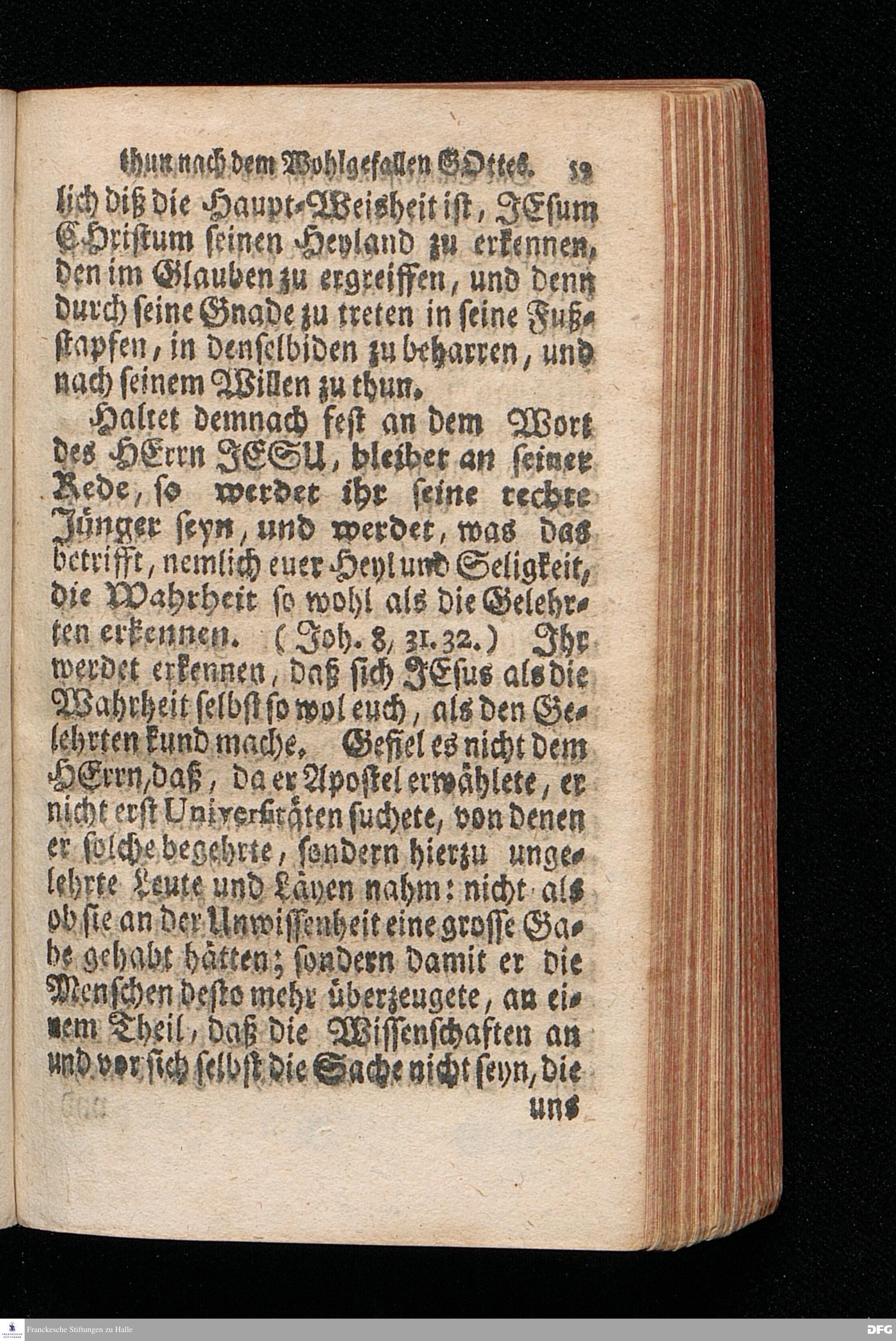 Das Einige, so noth ist, daß man lerne thun nach dem Wohlgefallen GOttes, In einer Am Sonntage Cantate 1721. aus den Worten Ps.143,10. Lehre mich thun nach deinem Wohlgefallen: denn du bist mein GOtt. Dein guter Geist führe mich auf ebener Bahn; Mit Genehmhaltung der Hochlöbl.Theol.Facultät zu Jena in der Collegen=Kirche gehaltenen Predigt vorgestellet von August Herr[!]mann Francken, S.Th.Prof.Past.Vlr.& Gymn.Schol. Andere Auflage. HALLE, in Verlegung des Waysenhauses. 1724.