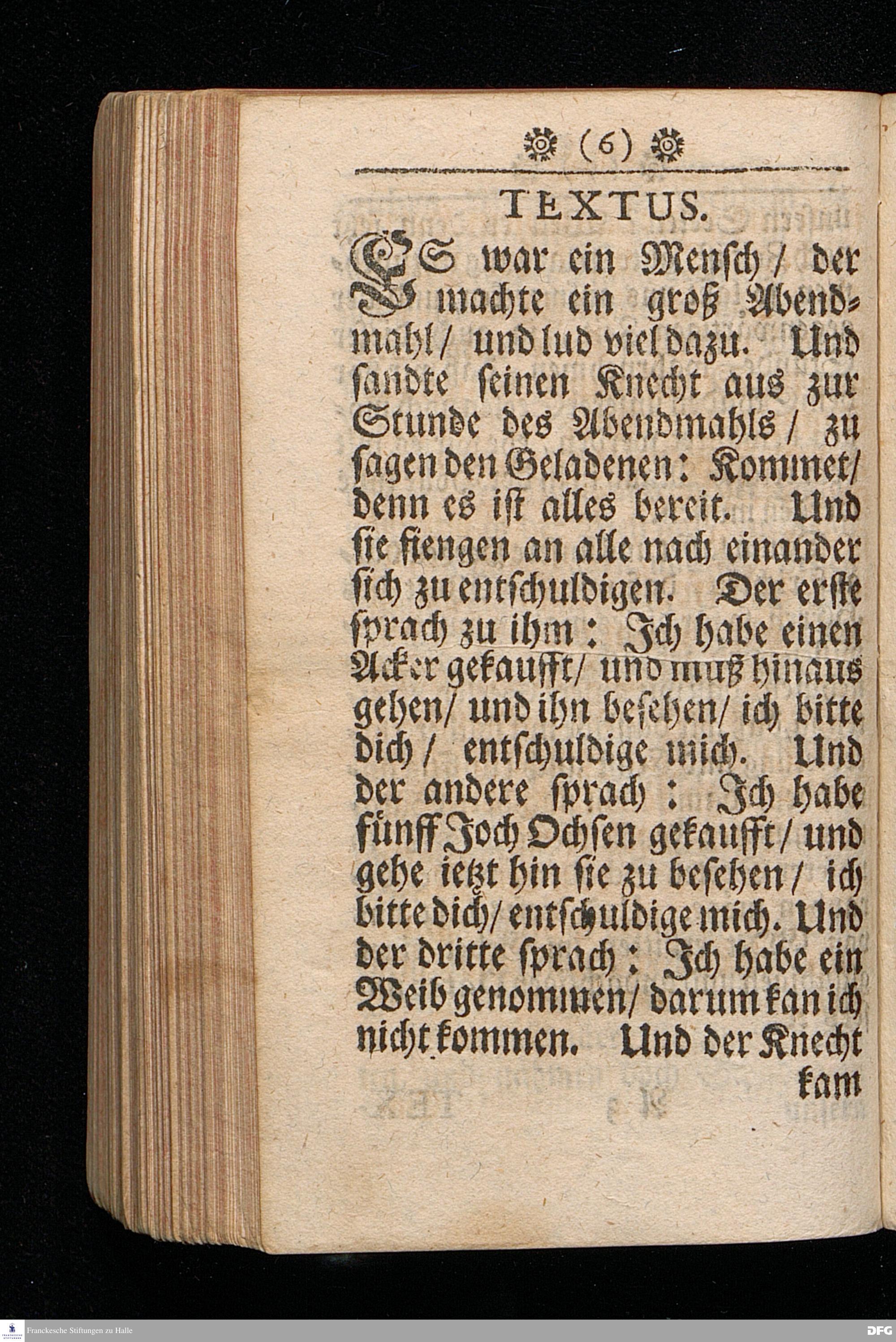 Die Einladung zu dem grossen Abendmahl GOttes, Aus Luc.XIV, 16-24. In einer zu Halle in der Schul=Kirche Am II.Sonntag nach Trinit. Anno 1709. gehaltenen Predigt vorgetragen von August Hermann Francken / S.Th.Prof.Past.Vlr.& Gymn.Schol. Andere Auflage. HALLE, Im Wäysen=Hause, 1723.
