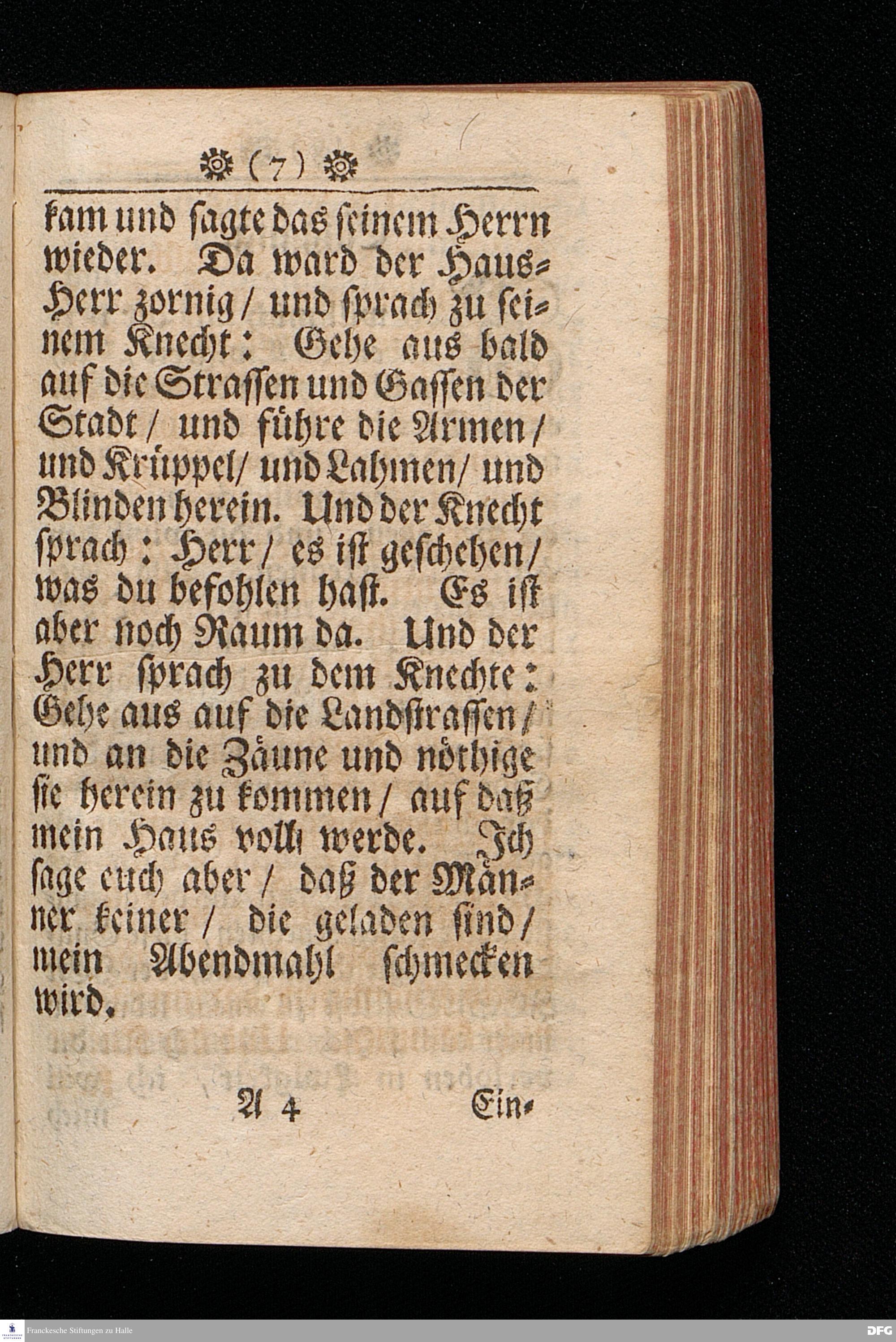 Die Einladung zu dem grossen Abendmahl GOttes, Aus Luc.XIV, 16-24. In einer zu Halle in der Schul=Kirche Am II.Sonntag nach Trinit. Anno 1709. gehaltenen Predigt vorgetragen von August Hermann Francken / S.Th.Prof.Past.Vlr.& Gymn.Schol. Andere Auflage. HALLE, Im Wäysen=Hause, 1723.