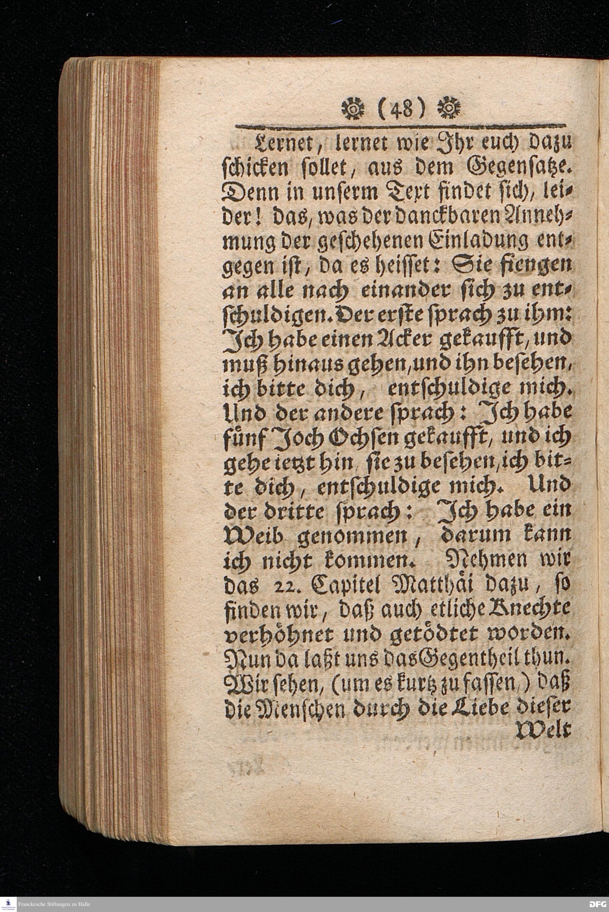 Die Einladung zu dem grossen Abendmahl GOttes, Aus Luc.XIV, 16-24. In einer zu Halle in der Schul=Kirche Am II.Sonntag nach Trinit. Anno 1709. gehaltenen Predigt vorgetragen von August Hermann Francken / S.Th.Prof.Past.Vlr.& Gymn.Schol. Andere Auflage. HALLE, Im Wäysen=Hause, 1723.