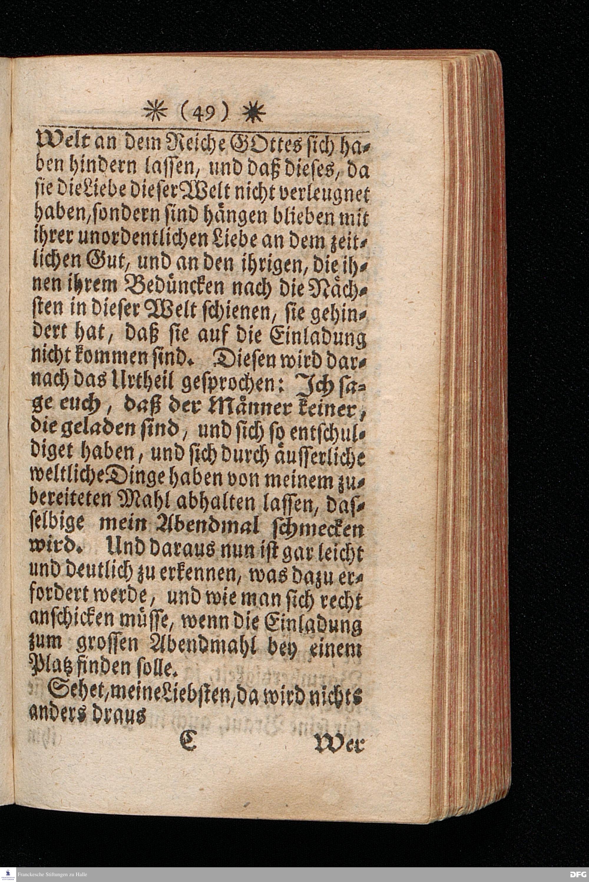 Die Einladung zu dem grossen Abendmahl GOttes, Aus Luc.XIV, 16-24. In einer zu Halle in der Schul=Kirche Am II.Sonntag nach Trinit. Anno 1709. gehaltenen Predigt vorgetragen von August Hermann Francken / S.Th.Prof.Past.Vlr.& Gymn.Schol. Andere Auflage. HALLE, Im Wäysen=Hause, 1723.