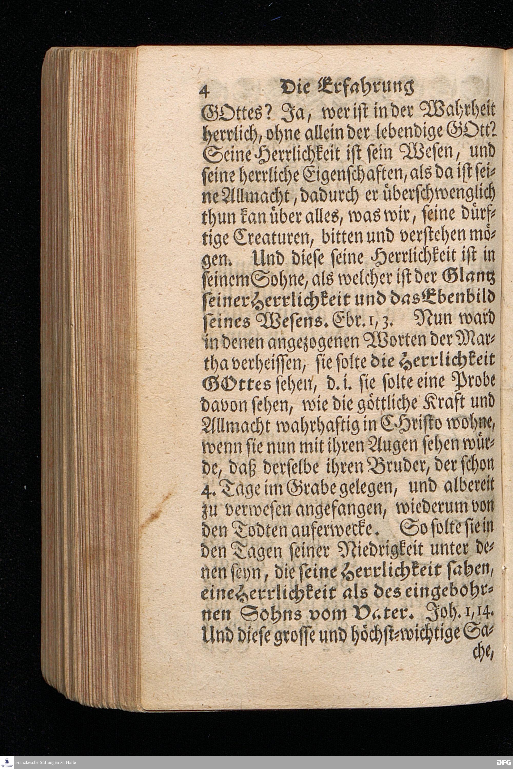 Die Erfahrung Der Herrlichkeit GOttes, Aus dem 5 Buch Mosis XXXII, 39.40. [Bibelzitat.] Am Buß=Tage den 2.Sept.1716. In der St.Ulrichs=Kirche in Halle vorgestellet von August Hermann Francken / S.Th.Prof.& Past.Vlr.& Schol. Der Jugend in den Schulen des Wäysenhauses / nach gehaltenem Examine, den 7.Nov.gedachten Jahres ausgetheilet. Andere Auflage. Halle, zu finden im Wäysen=Hause 1730.