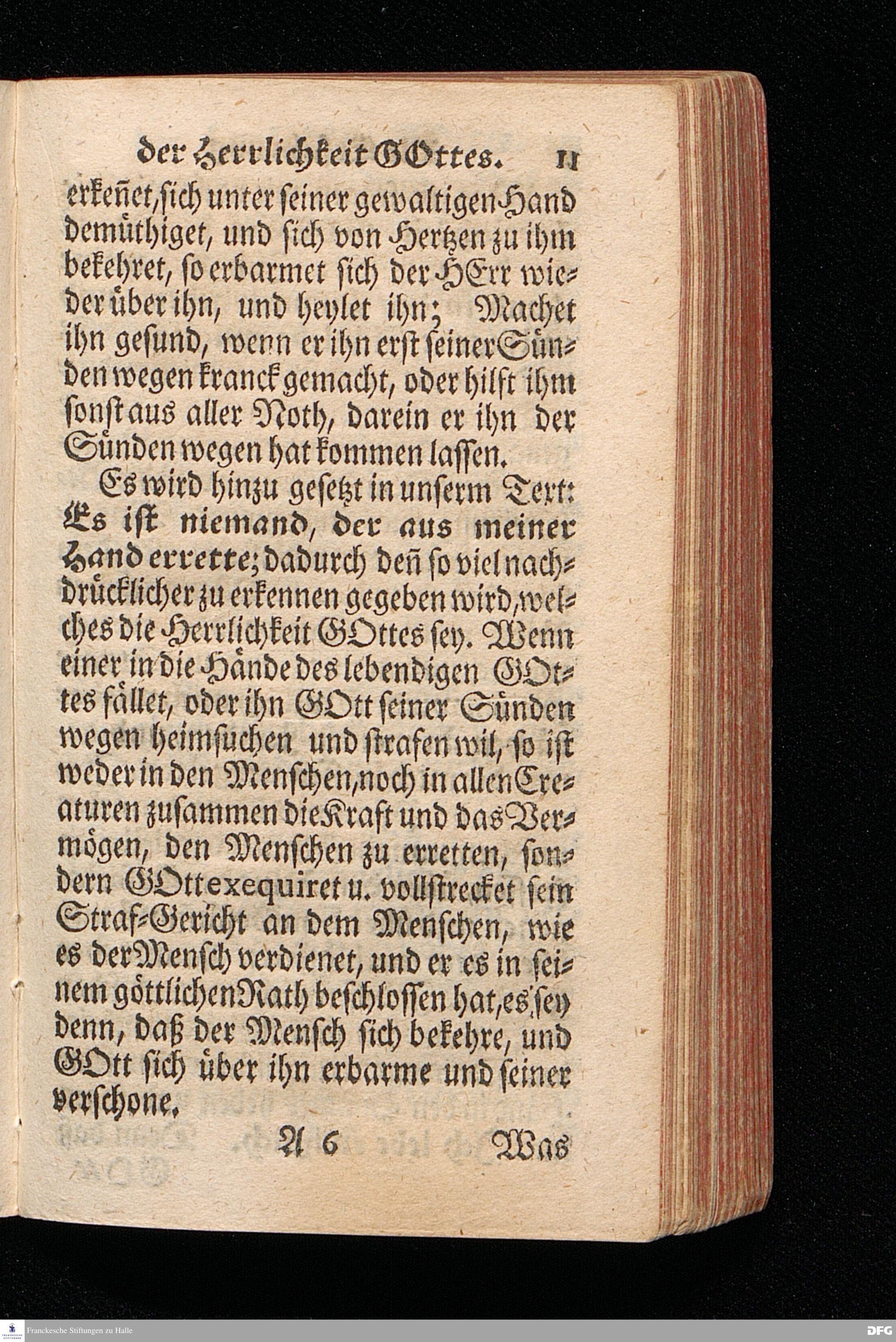 Die Erfahrung Der Herrlichkeit GOttes, Aus dem 5 Buch Mosis XXXII, 39.40. [Bibelzitat.] Am Buß=Tage den 2.Sept.1716. In der St.Ulrichs=Kirche in Halle vorgestellet von August Hermann Francken / S.Th.Prof.& Past.Vlr.& Schol. Der Jugend in den Schulen des Wäysenhauses / nach gehaltenem Examine, den 7.Nov.gedachten Jahres ausgetheilet. Andere Auflage. Halle, zu finden im Wäysen=Hause 1730.