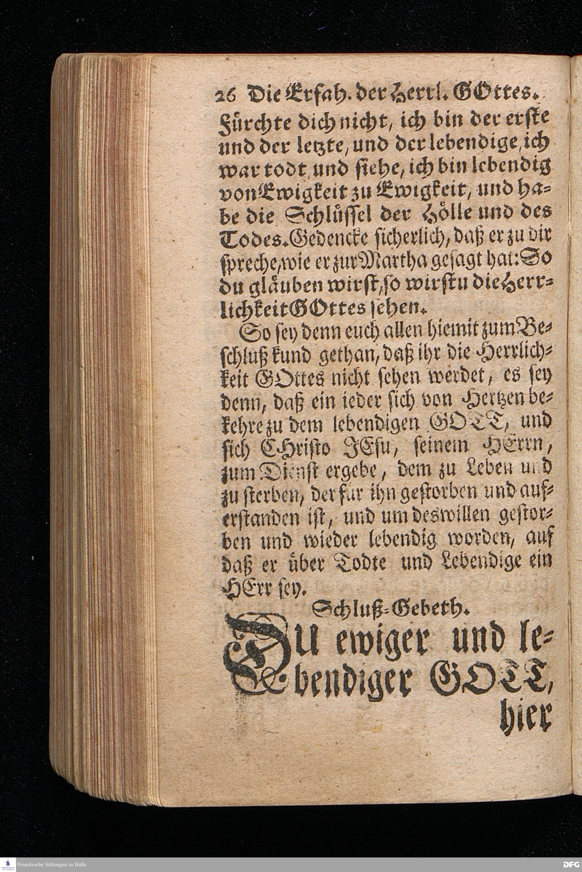 Die Erfahrung Der Herrlichkeit GOttes, Aus dem 5 Buch Mosis XXXII, 39.40. [Bibelzitat.] Am Buß=Tage den 2.Sept.1716. In der St.Ulrichs=Kirche in Halle vorgestellet von August Hermann Francken / S.Th.Prof.& Past.Vlr.& Schol. Der Jugend in den Schulen des Wäysenhauses / nach gehaltenem Examine, den 7.Nov.gedachten Jahres ausgetheilet. Andere Auflage. Halle, zu finden im Wäysen=Hause 1730.