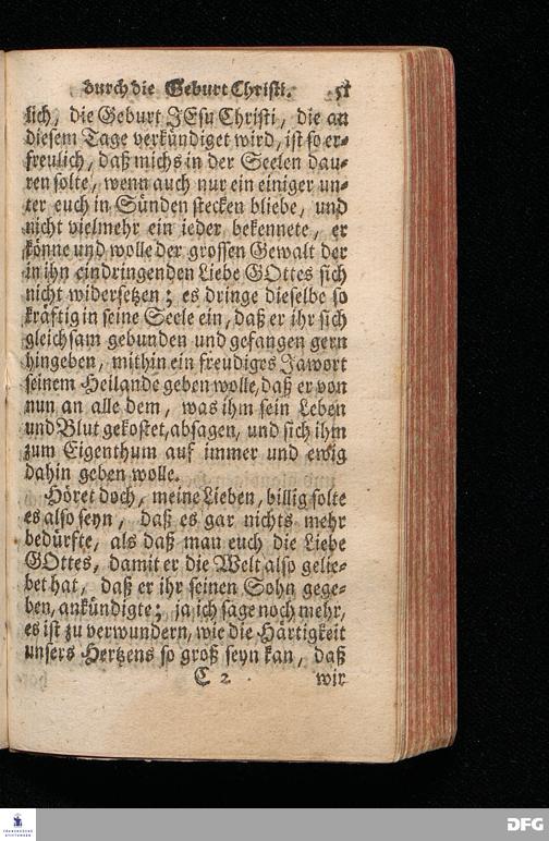 Die Erfreuung des Menschlichen Hertzens Durch die Geburt CHRISTI / Am I.Christ=Tage An.1717. In einer Uber den ordentlichen Evangelischen Text Luc.II, 1--14. In der Stadt=Kirchen zu Blaubeuren im Hertzogthum Würtemberg, Auf Erfordern Sr.Hochwürden des jetzigen Herrn Prälaten und gantzen Ministerii daselbst, gehaltenen Predigt vorgestellet Und auf Begehren zum Druck gegeben von August Hermann Francken / S.Theol.Prof.Past.und Scholarcha in Halle im Hertzogthum Magdeburg. Dritte Auflage / Nach dem zu Ulm gedruckten Exemplar. HALLE, gedruckt im Wäysen=Hause. 1719.
