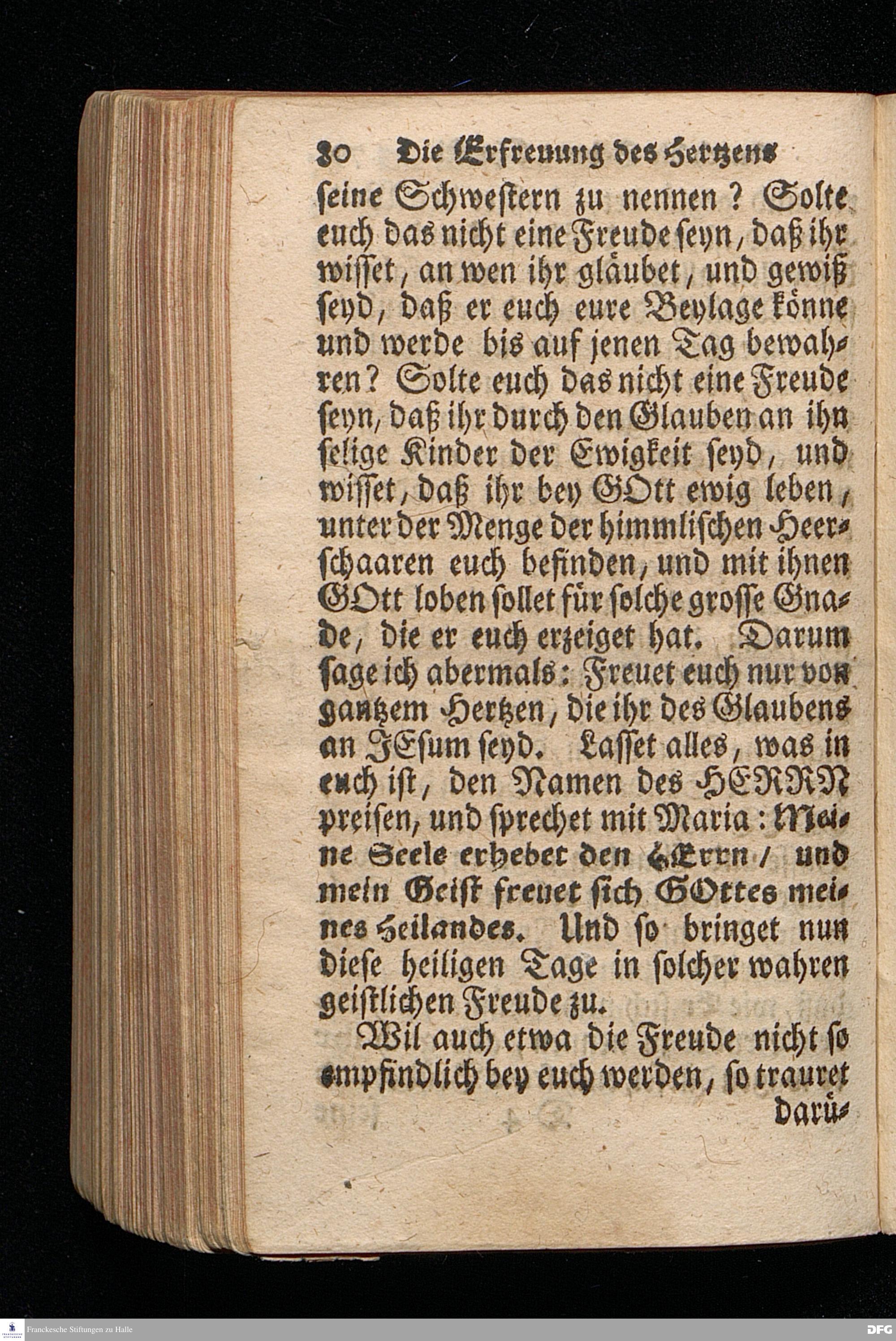 Die Erfreuung des Menschlichen Hertzens Durch die Geburt CHRISTI / Am I.Christ=Tage An.1717. In einer Uber den ordentlichen Evangelischen Text Luc.II, 1--14. In der Stadt=Kirchen zu Blaubeuren im Hertzogthum Würtemberg, Auf Erfordern Sr.Hochwürden des jetzigen Herrn Prälaten und gantzen Ministerii daselbst, gehaltenen Predigt vorgestellet Und auf Begehren zum Druck gegeben von August Hermann Francken / S.Theol.Prof.Past.und Scholarcha in Halle im Hertzogthum Magdeburg. Dritte Auflage / Nach dem zu Ulm gedruckten Exemplar. HALLE, gedruckt im Wäysen=Hause. 1719.