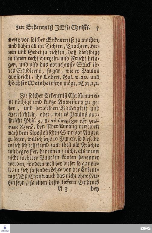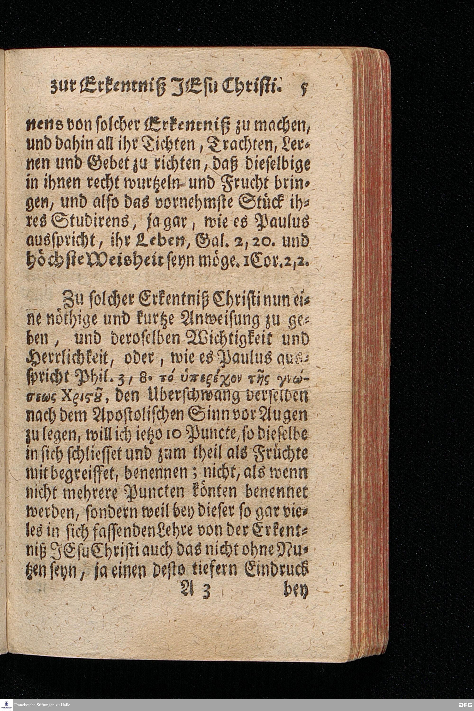 Kurtze Anweisung zur wahren, lauteren und Apostolischen Erkentniß JEsu CHristi; Da In zehen Puncten / wie dieselbe nach dem Sinn und der Lehr=Art der Apostel richtig und nachdrücklich zum wahren Heyl der Seelen zu fassen sey / gezeiget wird Von August Hermann Francken / S.Theol.Prof.Ord.& Past.Ulr. Vierte Auflage. HALLE, in Verlegung des Wäysenhauses. 1728.