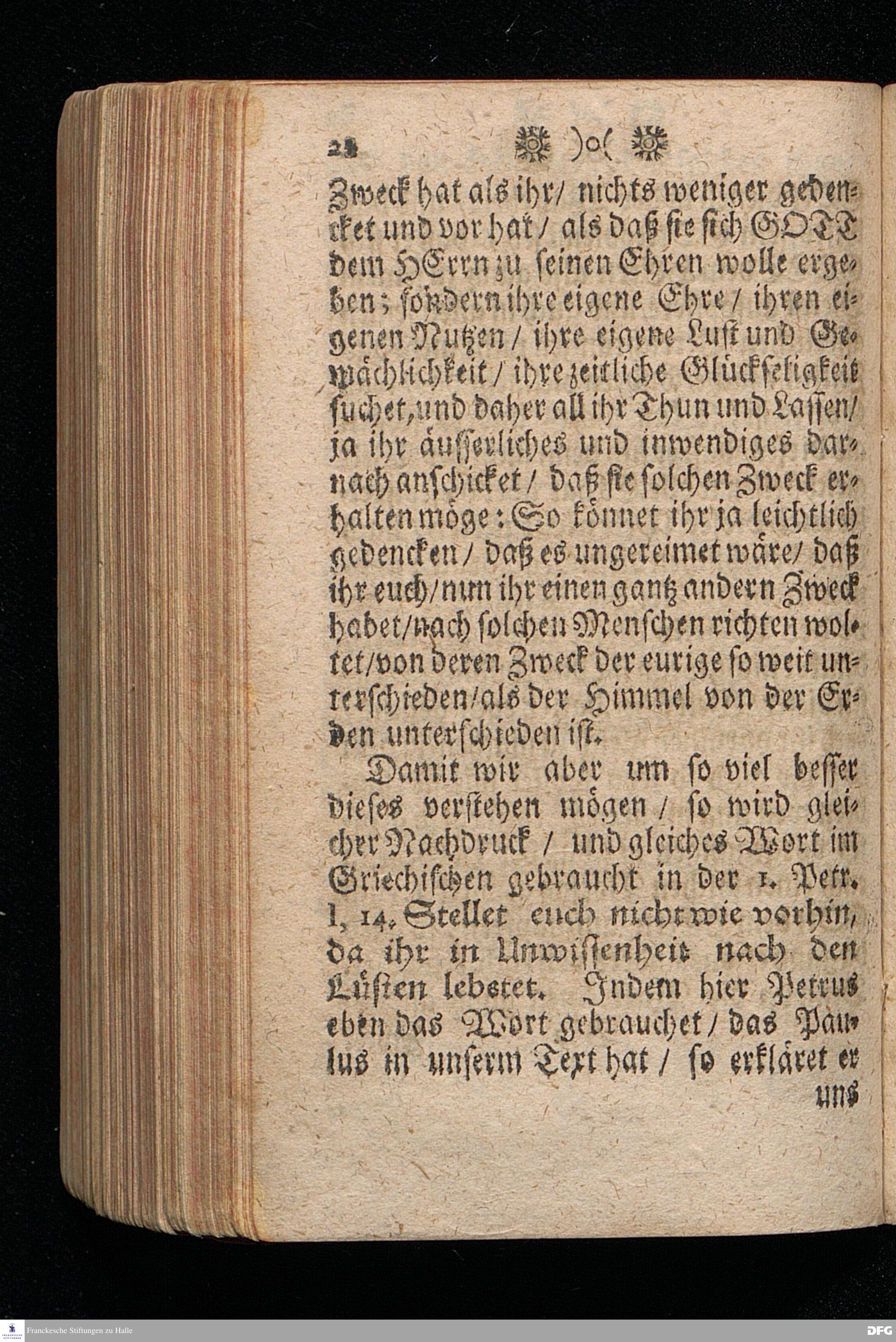 BREVIS INSTITVTIO de STUDIO RENOVATIONIS oder Kurtzer Unterricht von der Erneurung / Wie sich ein jeder Gläubiger derselben nach der Richtschnur Göttlichen Worts befleißigen solle / In einer Predigt über Rom.XII, 1.2. am VII.Soñtage nach Trinit. Anno 1709. In der Schul=Kirche zu Halle ertheilet Von August Hermann Francken / S.Theol.Prof.Ord.und Past. die andere Auflage. HALLE, Im Wäysenhause, 1716.