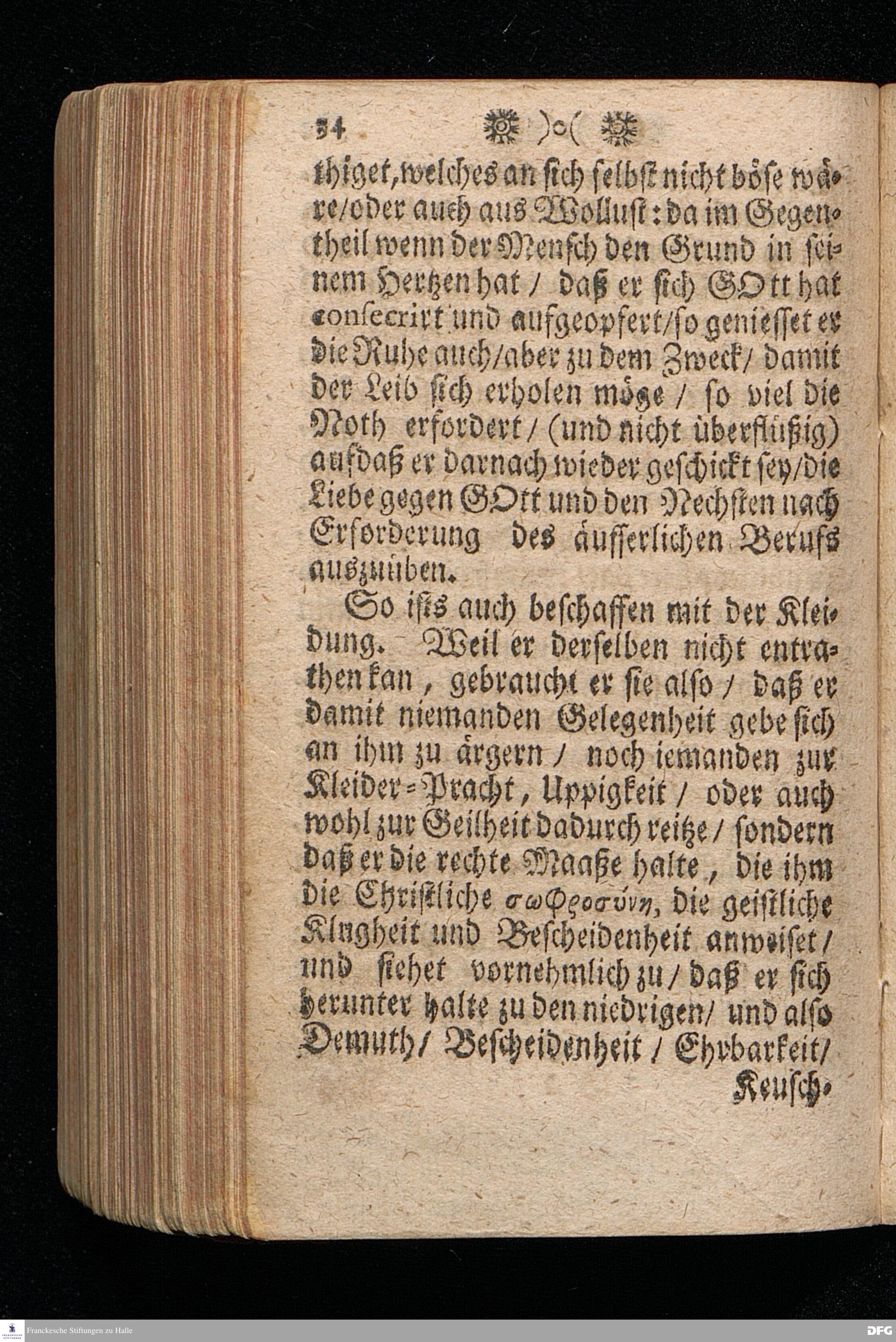 BREVIS INSTITVTIO de STUDIO RENOVATIONIS oder Kurtzer Unterricht von der Erneurung / Wie sich ein jeder Gläubiger derselben nach der Richtschnur Göttlichen Worts befleißigen solle / In einer Predigt über Rom.XII, 1.2. am VII.Soñtage nach Trinit. Anno 1709. In der Schul=Kirche zu Halle ertheilet Von August Hermann Francken / S.Theol.Prof.Ord.und Past. die andere Auflage. HALLE, Im Wäysenhause, 1716.