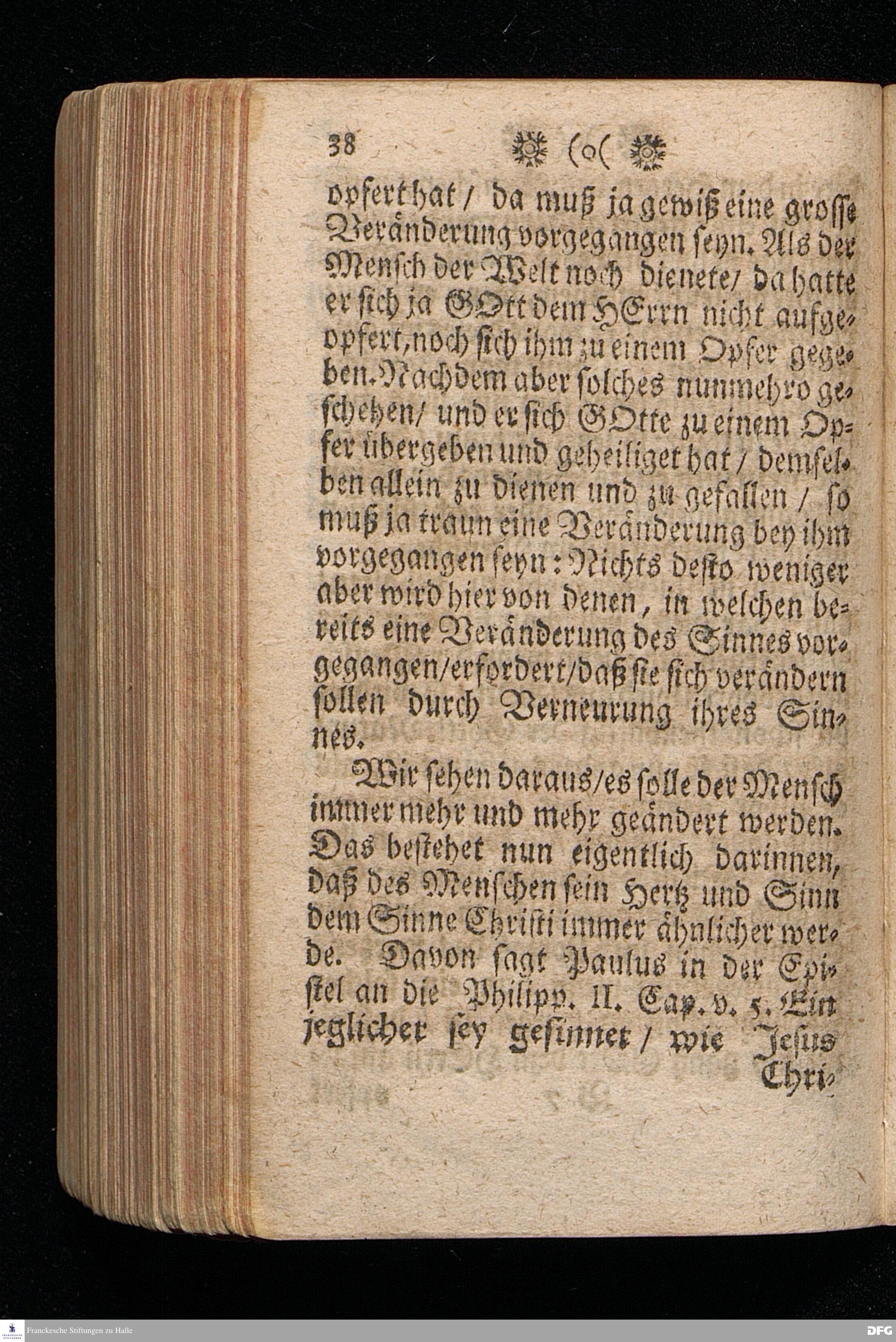BREVIS INSTITVTIO de STUDIO RENOVATIONIS oder Kurtzer Unterricht von der Erneurung / Wie sich ein jeder Gläubiger derselben nach der Richtschnur Göttlichen Worts befleißigen solle / In einer Predigt über Rom.XII, 1.2. am VII.Soñtage nach Trinit. Anno 1709. In der Schul=Kirche zu Halle ertheilet Von August Hermann Francken / S.Theol.Prof.Ord.und Past. die andere Auflage. HALLE, Im Wäysenhause, 1716.
