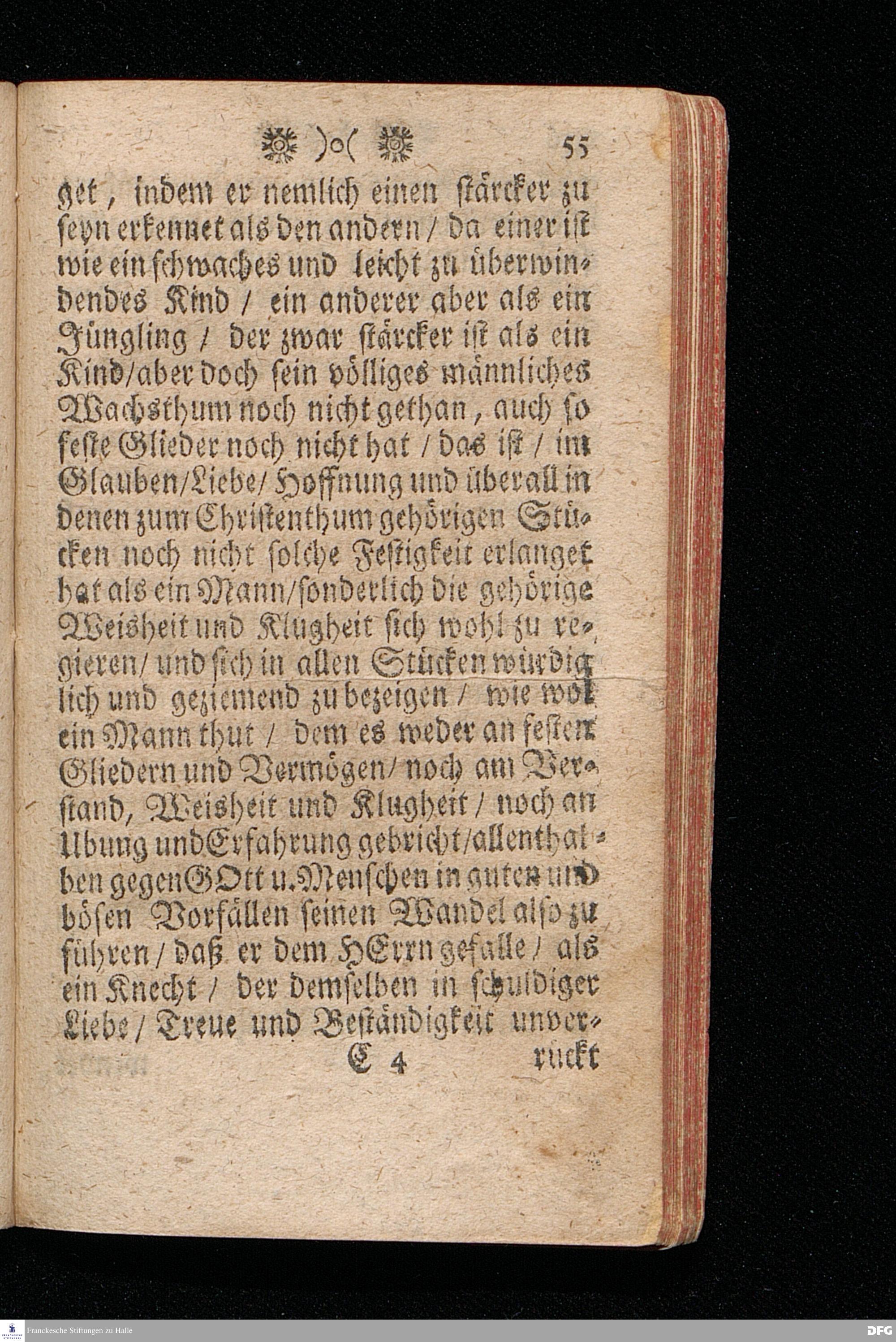 BREVIS INSTITVTIO de STUDIO RENOVATIONIS oder Kurtzer Unterricht von der Erneurung / Wie sich ein jeder Gläubiger derselben nach der Richtschnur Göttlichen Worts befleißigen solle / In einer Predigt über Rom.XII, 1.2. am VII.Soñtage nach Trinit. Anno 1709. In der Schul=Kirche zu Halle ertheilet Von August Hermann Francken / S.Theol.Prof.Ord.und Past. die andere Auflage. HALLE, Im Wäysenhause, 1716.