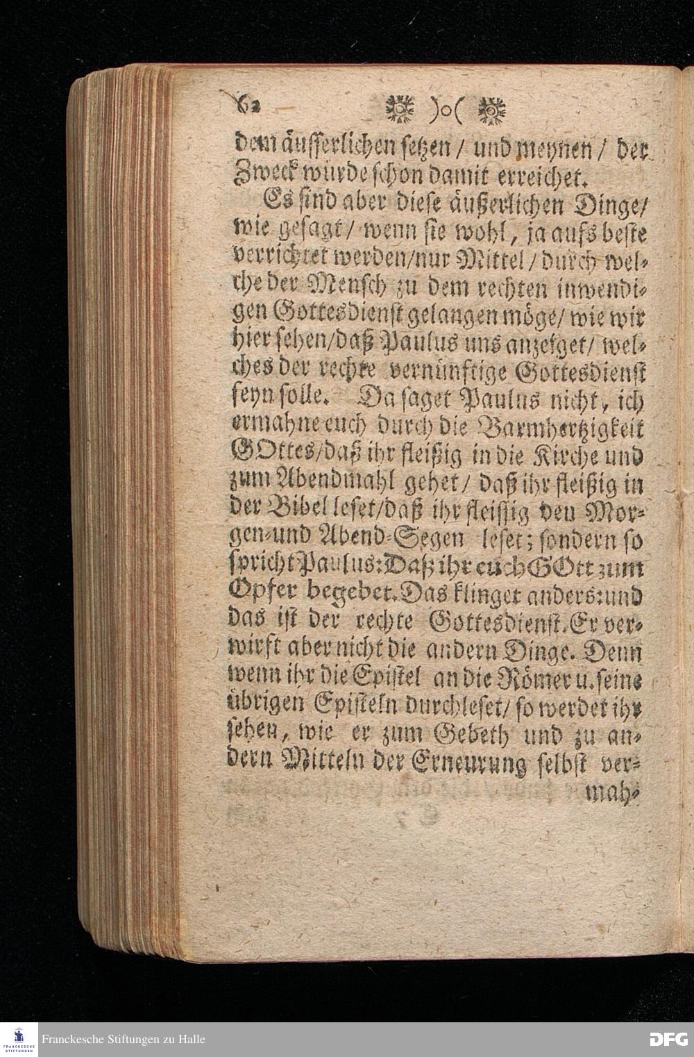 BREVIS INSTITVTIO de STUDIO RENOVATIONIS oder Kurtzer Unterricht von der Erneurung / Wie sich ein jeder Gläubiger derselben nach der Richtschnur Göttlichen Worts befleißigen solle / In einer Predigt über Rom.XII, 1.2. am VII.Soñtage nach Trinit. Anno 1709. In der Schul=Kirche zu Halle ertheilet Von August Hermann Francken / S.Theol.Prof.Ord.und Past. die andere Auflage. HALLE, Im Wäysenhause, 1716.