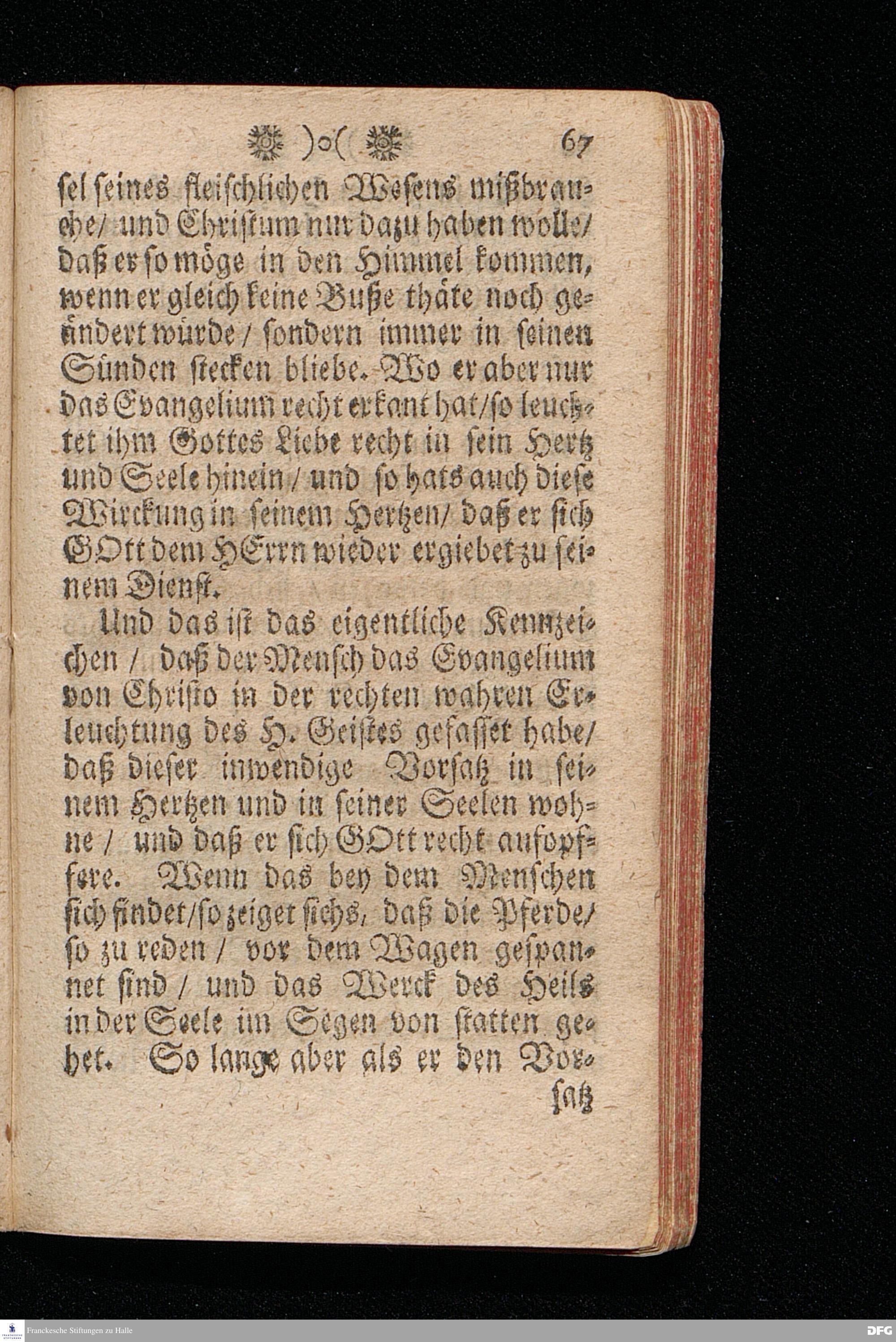BREVIS INSTITVTIO de STUDIO RENOVATIONIS oder Kurtzer Unterricht von der Erneurung / Wie sich ein jeder Gläubiger derselben nach der Richtschnur Göttlichen Worts befleißigen solle / In einer Predigt über Rom.XII, 1.2. am VII.Soñtage nach Trinit. Anno 1709. In der Schul=Kirche zu Halle ertheilet Von August Hermann Francken / S.Theol.Prof.Ord.und Past. die andere Auflage. HALLE, Im Wäysenhause, 1716.