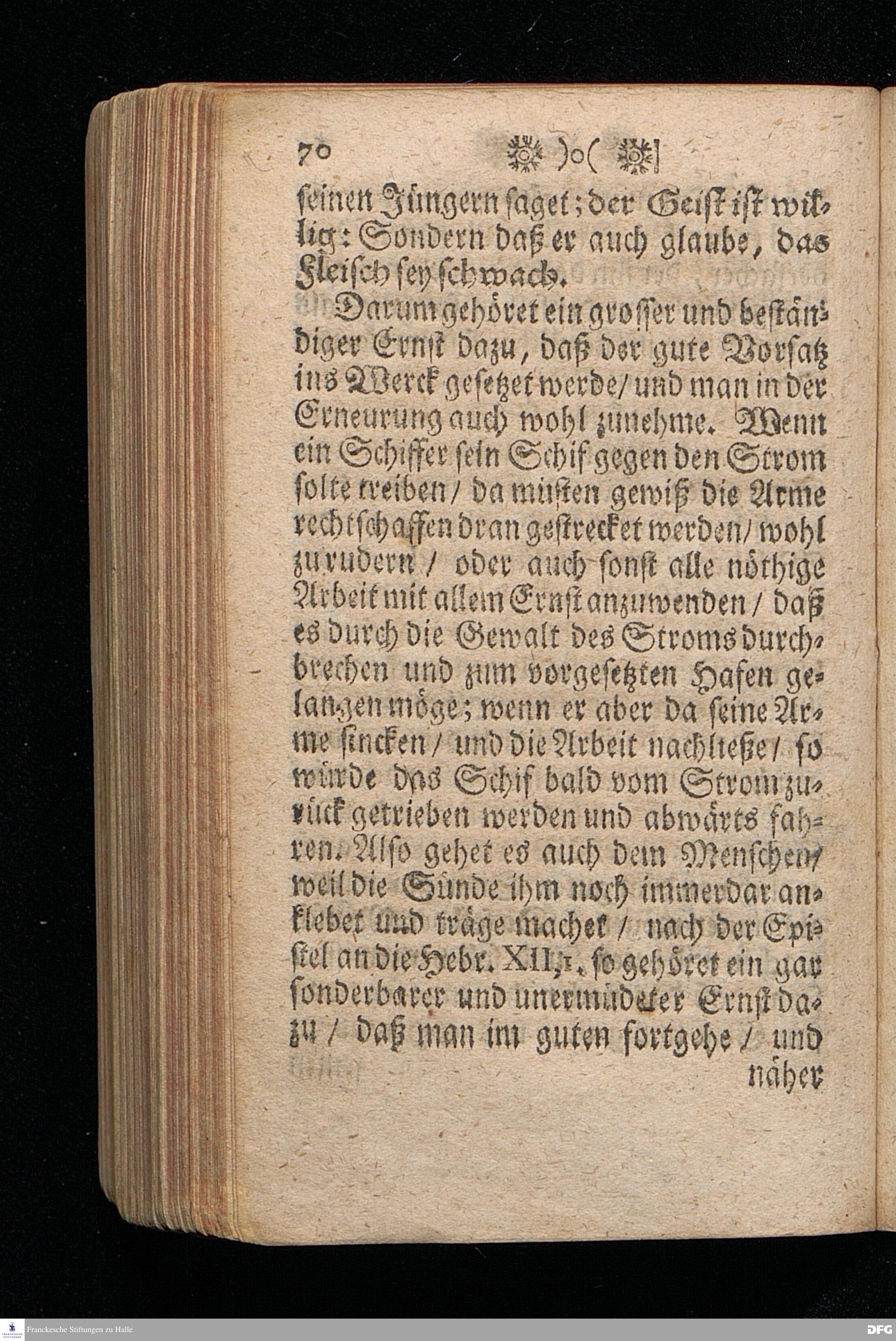 BREVIS INSTITVTIO de STUDIO RENOVATIONIS oder Kurtzer Unterricht von der Erneurung / Wie sich ein jeder Gläubiger derselben nach der Richtschnur Göttlichen Worts befleißigen solle / In einer Predigt über Rom.XII, 1.2. am VII.Soñtage nach Trinit. Anno 1709. In der Schul=Kirche zu Halle ertheilet Von August Hermann Francken / S.Theol.Prof.Ord.und Past. die andere Auflage. HALLE, Im Wäysenhause, 1716.