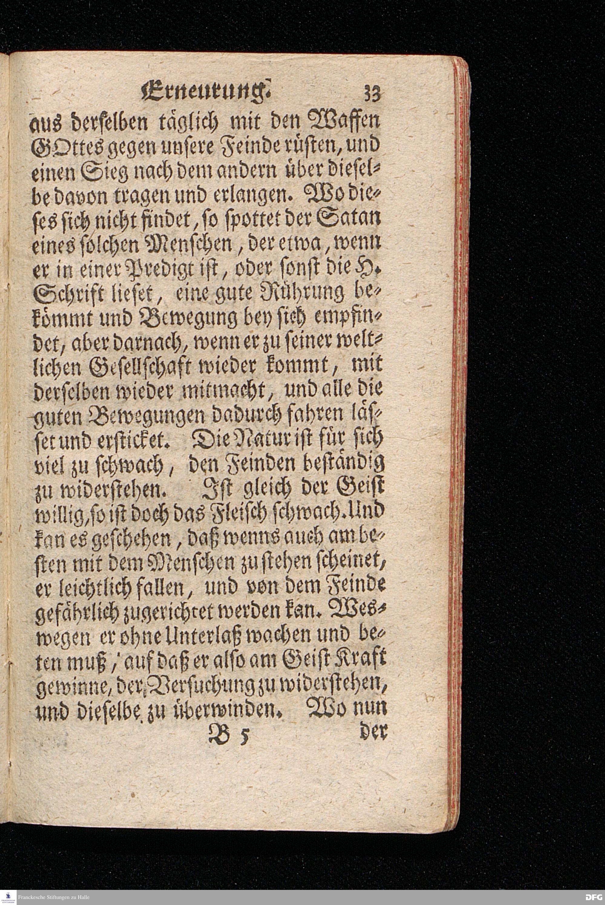 Die Tägliche Erneurung / I) Nach der uns obliegenden Pflicht, II) Nach ihrer wahren Beschaffenheit, III) Nach denen dazu dienlichen Mitteln. Aus der Epistolischen Lection Ephes.IV, 22-28. Am XIX.Sonnt.nach Trinit. Anno MDCCXIII. In der Schul=Kirche zu Halle vorgestellet von August Hermann Francken / S.Theol.Prof.Ord.Past.Vlric.& Scholarcha. Andere Auflage. HALLE, In Verlegung des Wäysen=Hauses. MDCCXXII.