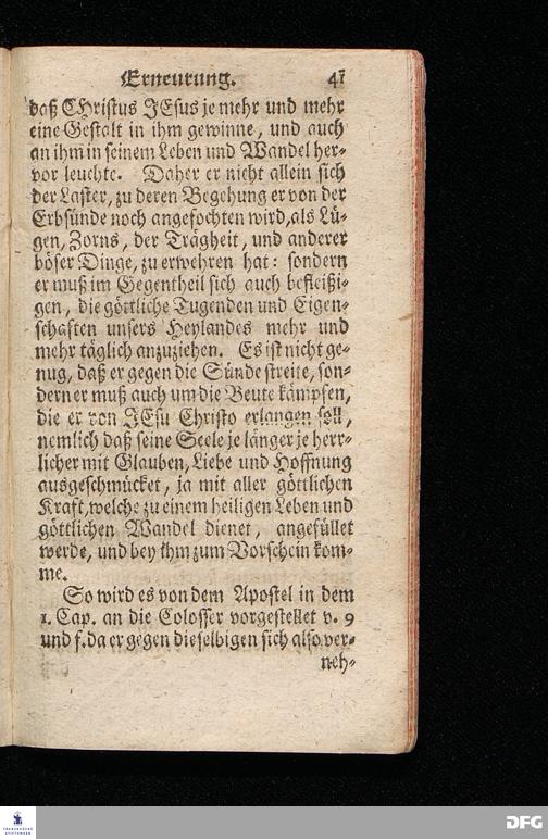 Die Tägliche Erneurung / I) Nach der uns obliegenden Pflicht, II) Nach ihrer wahren Beschaffenheit, III) Nach denen dazu dienlichen Mitteln. Aus der Epistolischen Lection Ephes.IV, 22-28. Am XIX.Sonnt.nach Trinit. Anno MDCCXIII. In der Schul=Kirche zu Halle vorgestellet von August Hermann Francken / S.Theol.Prof.Ord.Past.Vlric.& Scholarcha. Andere Auflage. HALLE, In Verlegung des Wäysen=Hauses. MDCCXXII.