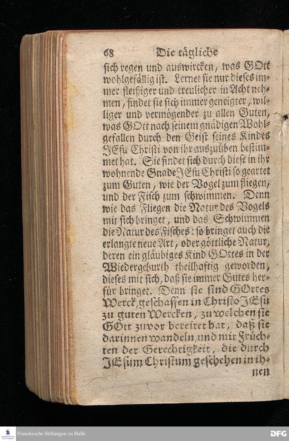 Die Tägliche Erneurung / I) Nach der uns obliegenden Pflicht, II) Nach ihrer wahren Beschaffenheit, III) Nach denen dazu dienlichen Mitteln. Aus der Epistolischen Lection Ephes.IV, 22-28. Am XIX.Sonnt.nach Trinit. Anno MDCCXIII. In der Schul=Kirche zu Halle vorgestellet von August Hermann Francken / S.Theol.Prof.Ord.Past.Vlric.& Scholarcha. Andere Auflage. HALLE, In Verlegung des Wäysen=Hauses. MDCCXXII.