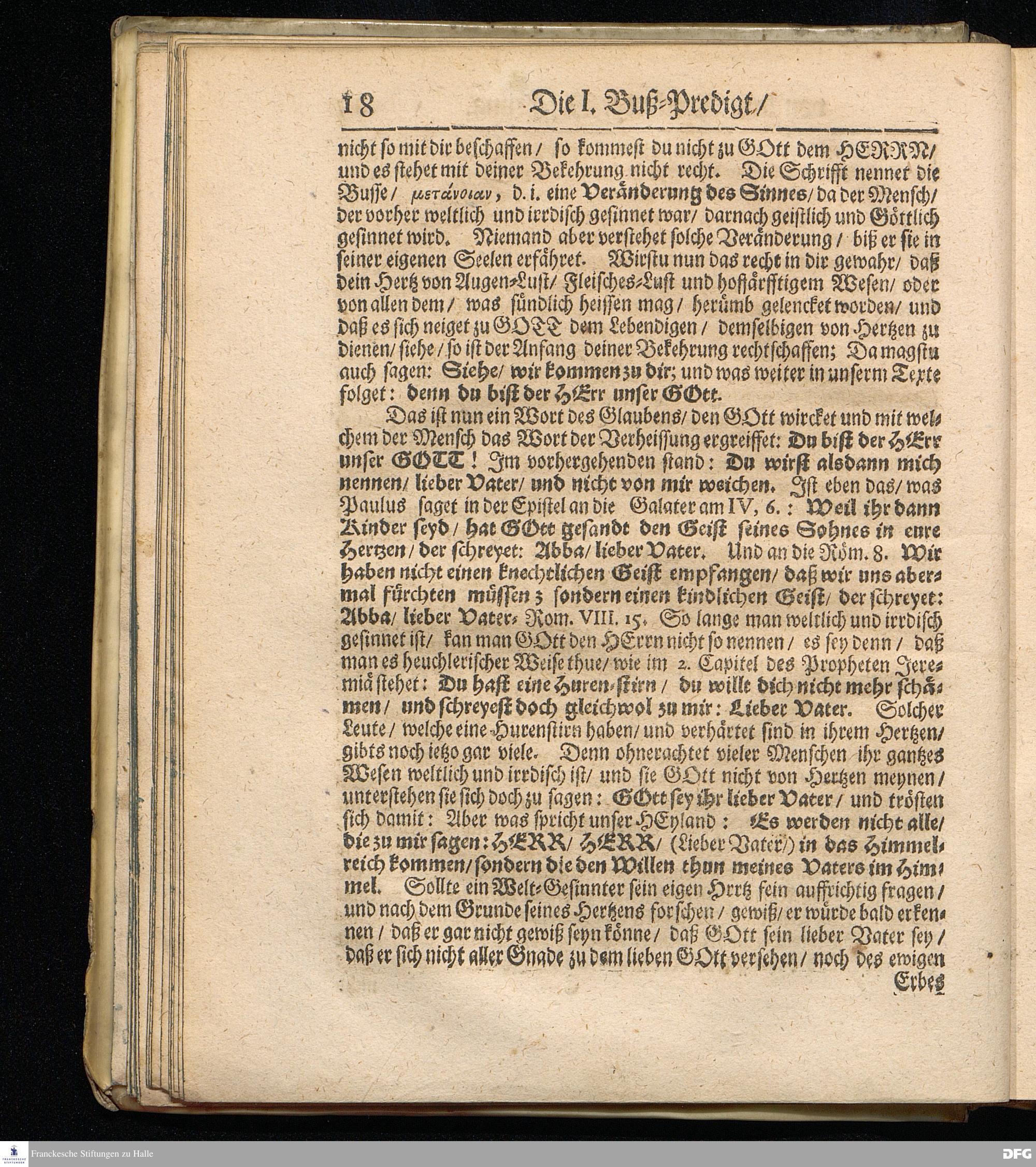 Von dem Wercke der Bekehrung. Die erste Buß-Predigt am 6. Maj 1696.