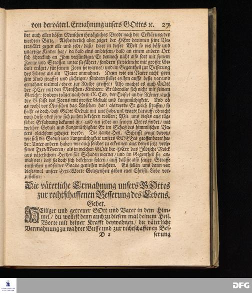 Väterliche Ermahnung unseres Gottes zur rechtschaffenen Besserung des Lebens. Die andere Buß-Predigt den 7. Octobr. 1696.