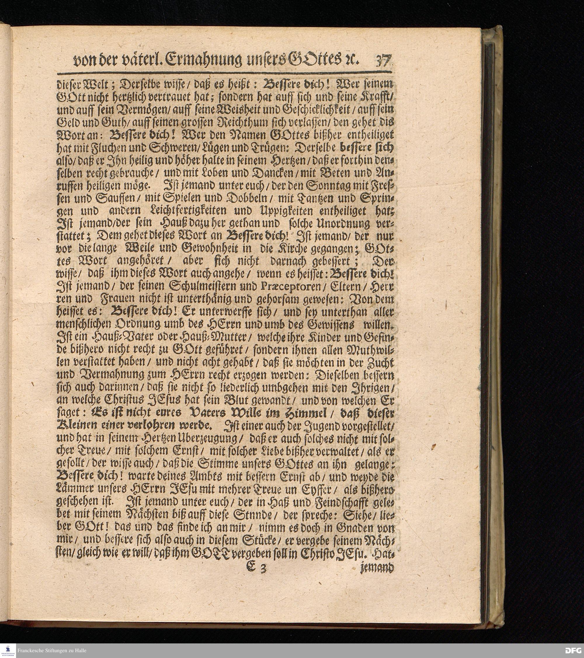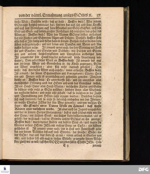 Väterliche Ermahnung unseres Gottes zur rechtschaffenen Besserung des Lebens. Die andere Buß-Predigt den 7. Octobr. 1696.