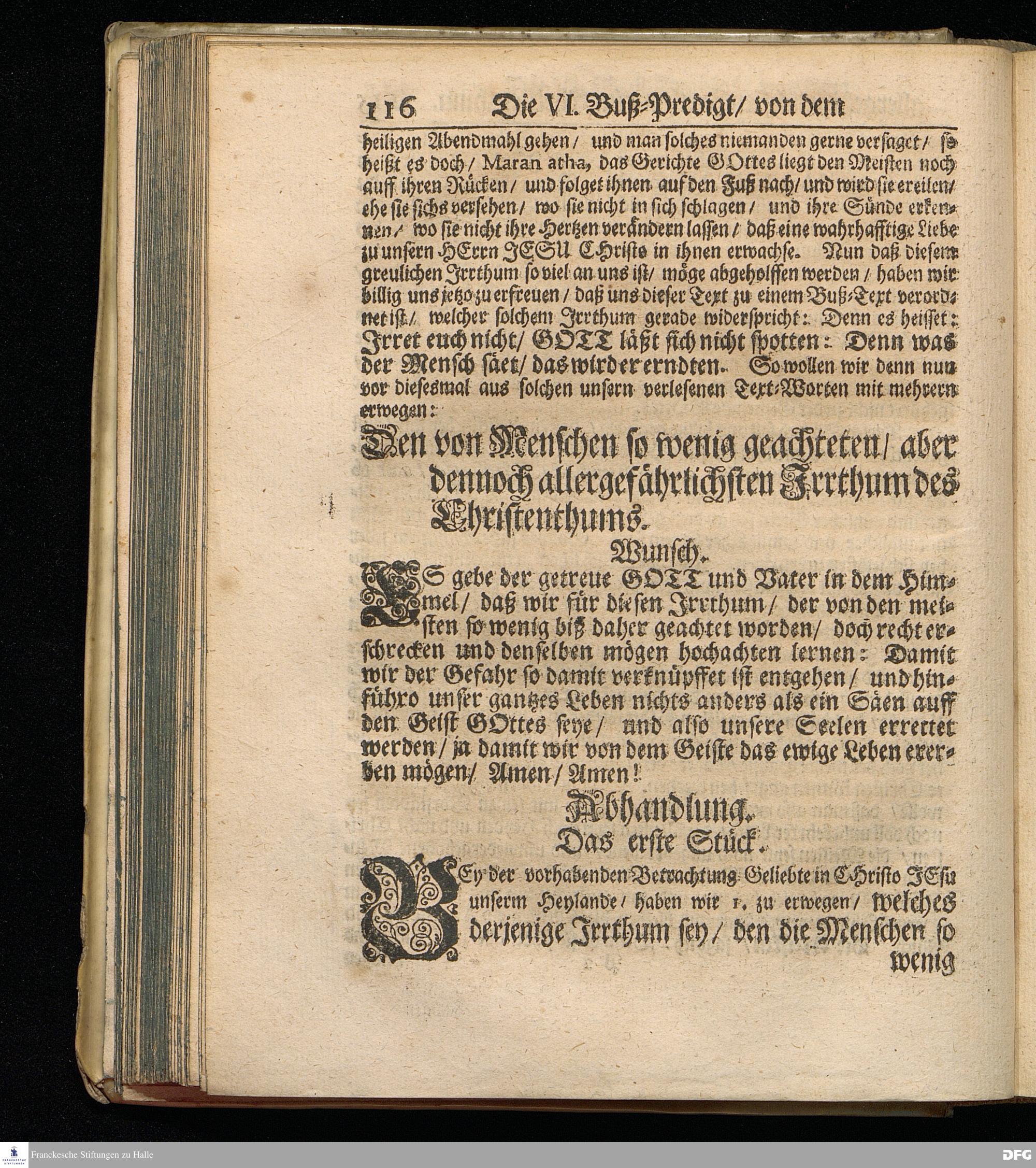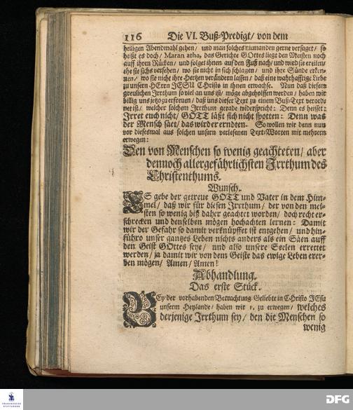 Von dem Allergefährlichsten Irrthum im Christenthum. Die sechste Buß-Predigt den 3. Mart. 1695.