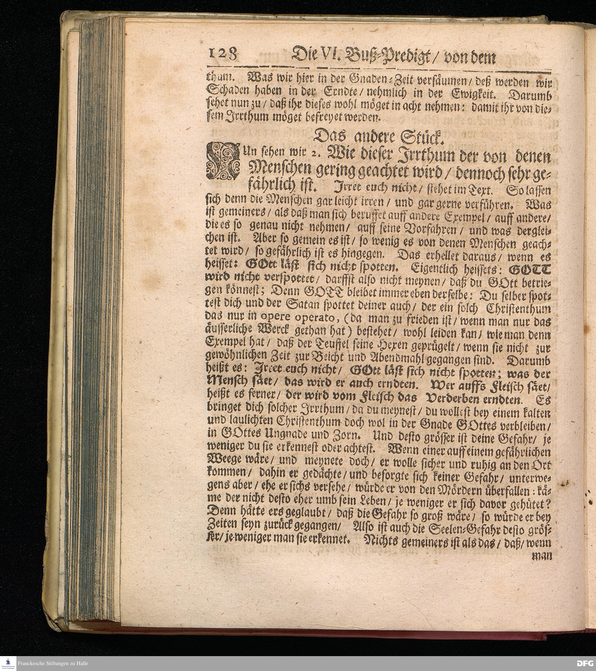 Von dem Allergefährlichsten Irrthum im Christenthum. Die sechste Buß-Predigt den 3. Mart. 1695.