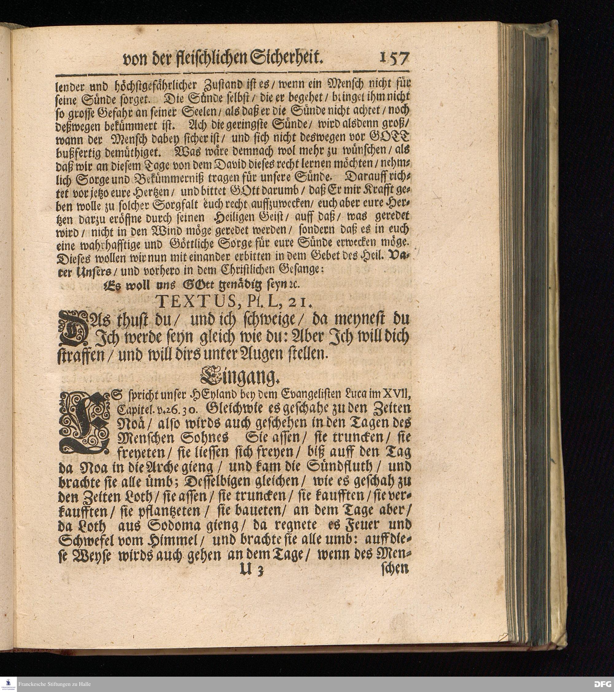 Von der fleischlichen Sicherheit. Die achte Buß-Predigt den 15. Jan. 1698. (Ps. 50,...