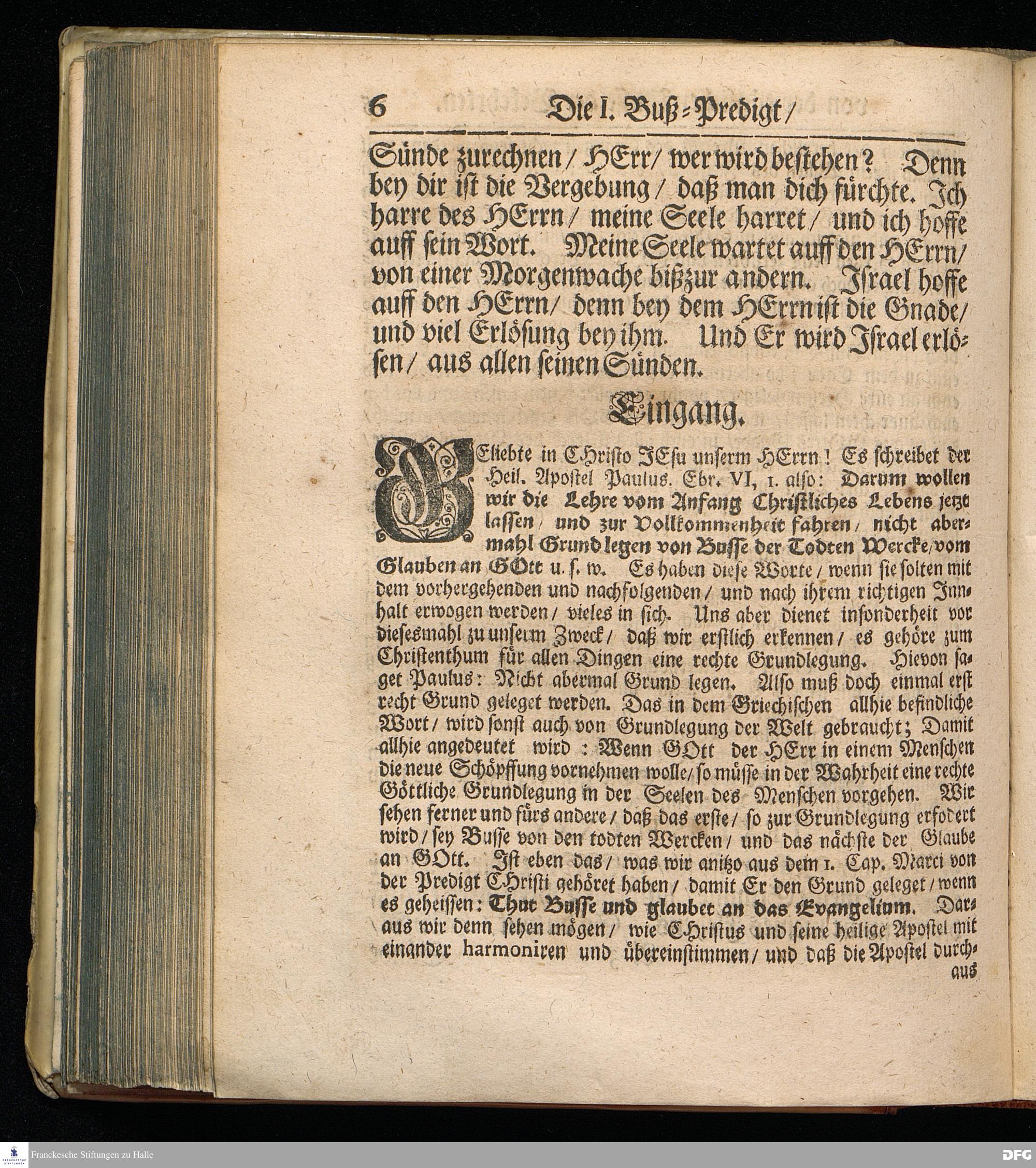 Von der Täglichen Busse der Bekehrten. Die I.Bußpredigt, den 6.Decembr.1702. (Ps...