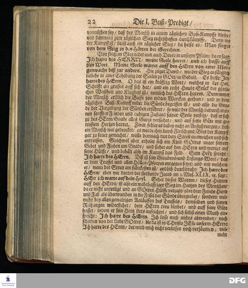 Von der Täglichen Busse der Bekehrten. Die I.Bußpredigt, den 6.Decembr.1702.