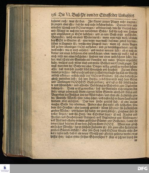 Von der Straffe der Unbußfertigen / und Erqvickung der Bußfertigen. Die VI.Buß=Predigt, den 6.Martii 1695.
