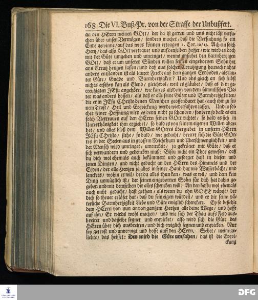 Von der Straffe der Unbußfertigen / und Erqvickung der Bußfertigen. Die VI.Buß=Predigt, den 6.Martii 1695.
