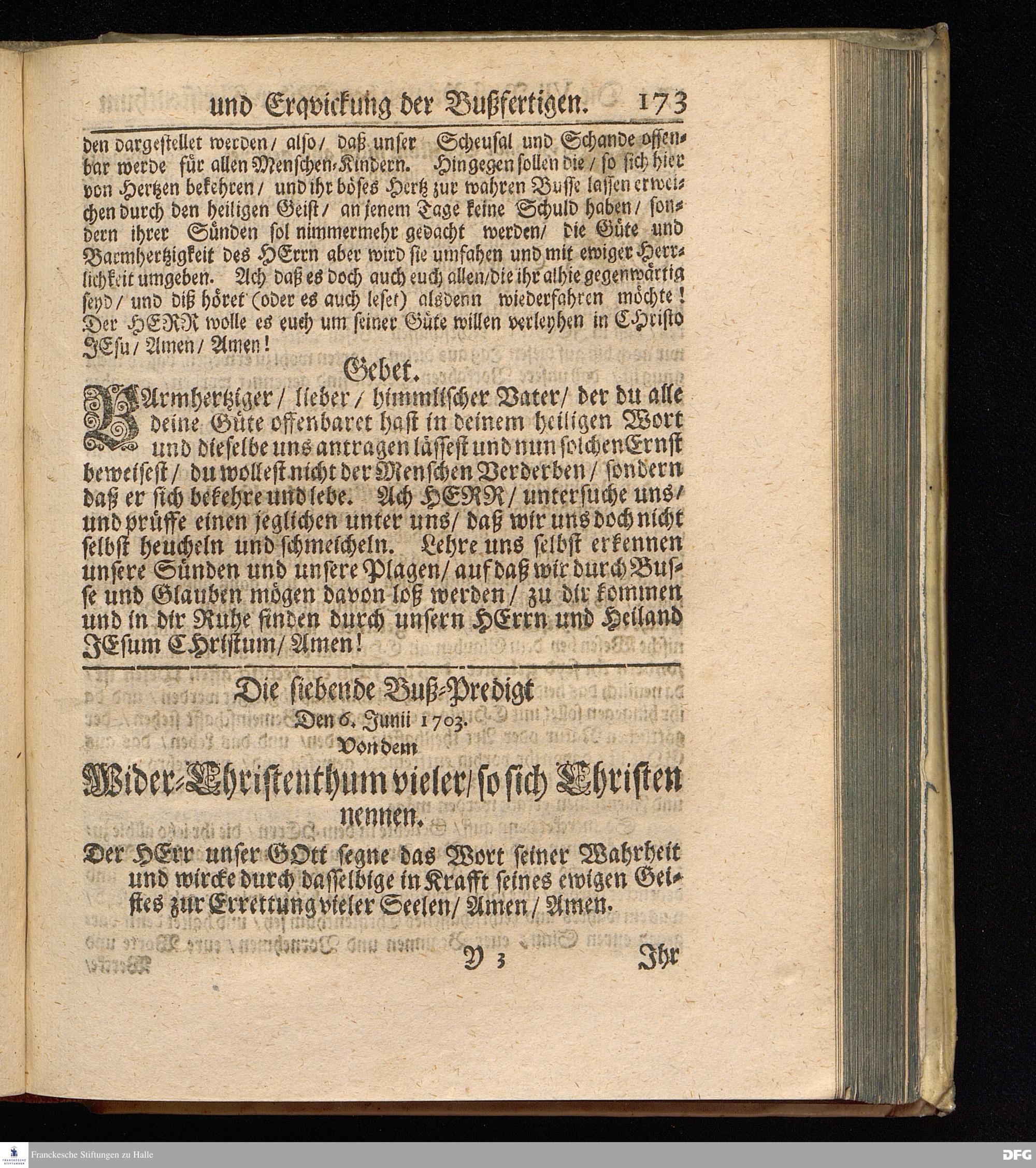 Von dem Wider=Christenthum vieler / so sich Christen nennen. Die VII.Buß=Predigt, den 6.Junii 1703.