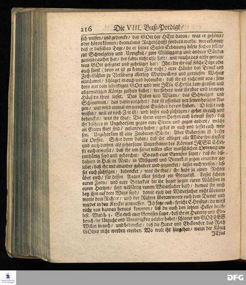 Von Unserm Könige CHristo JESU. Die VIII.Buß=Predigt, den 5.Septembr.1703.