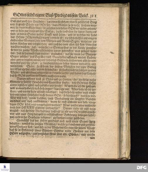 GOttes selbst eigene Buß=Predigt an sein Volck. Die XI.Buß=Predigt, den 14.Junii 1702.