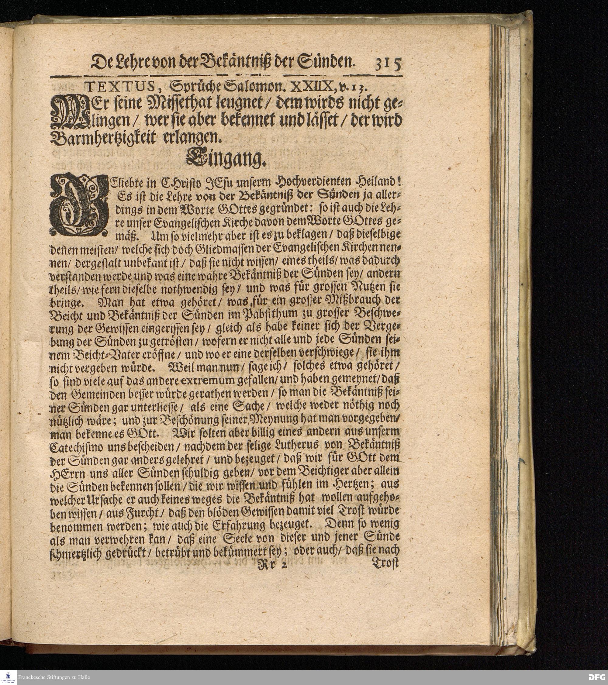 Textus. Sprüche Salomon. XXIIX, V. 13.