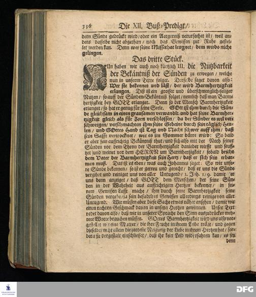 Die Lehre von der Bekäntniß der Sünden. Die XII.Buß=Predigt [ohne Datum]. (Sprüche...