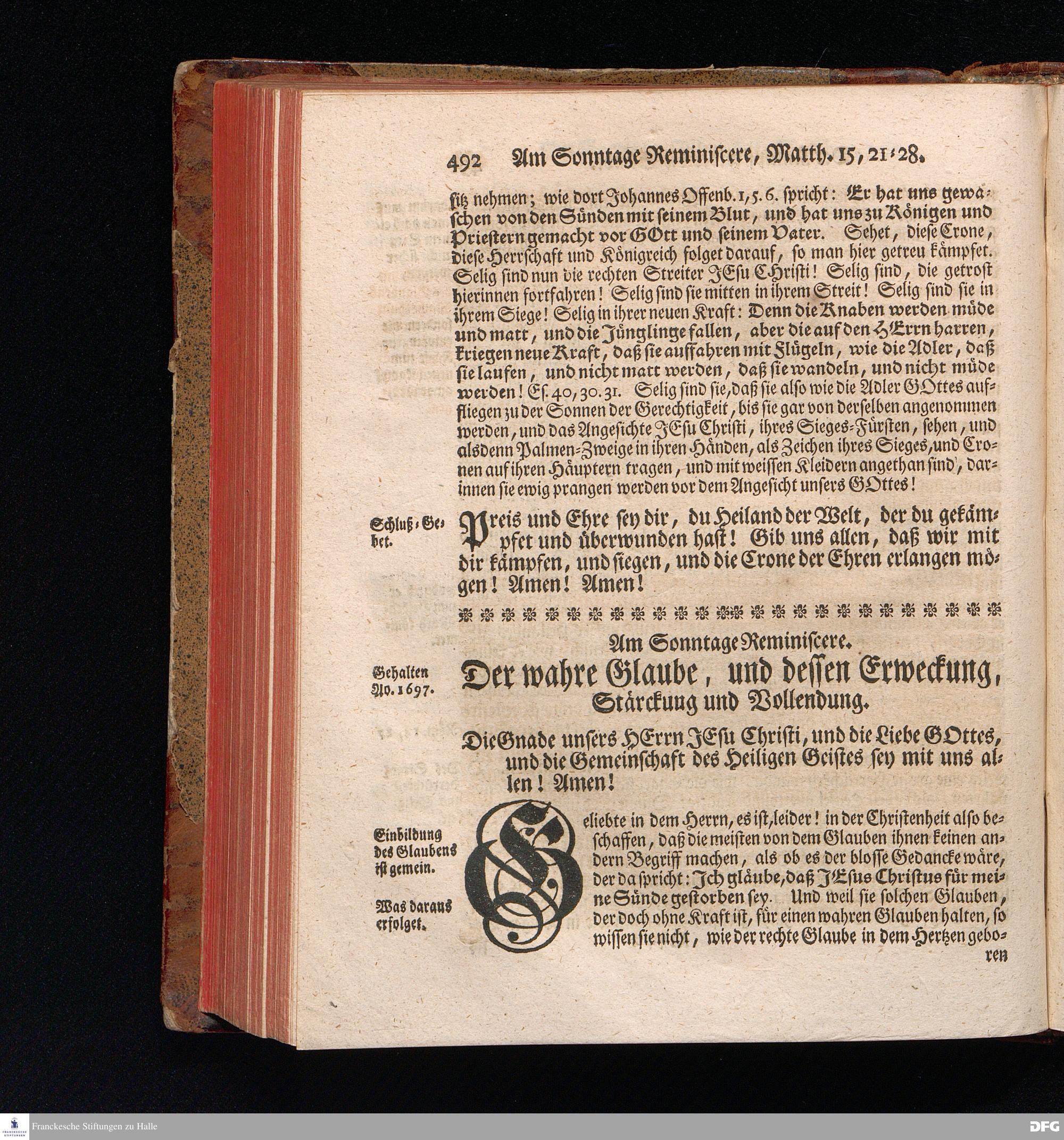 August Hermann Franckens, S.Theol.Prof.und Past. Sonn= Fest= und Apostel=Tags=Predigten, Darinnen Die zum wahren Christenthum gehörige nöthigste und vornehmste Materien abgehandelt sind; Nebst den darzu nützlichen Registern. Die achte EDITION. Mit Königl.Preuß.und Churfl.Brandenb.Privil. HALLE, gedruckt und verlegt im Wäysenhause / MDCCXLVI.