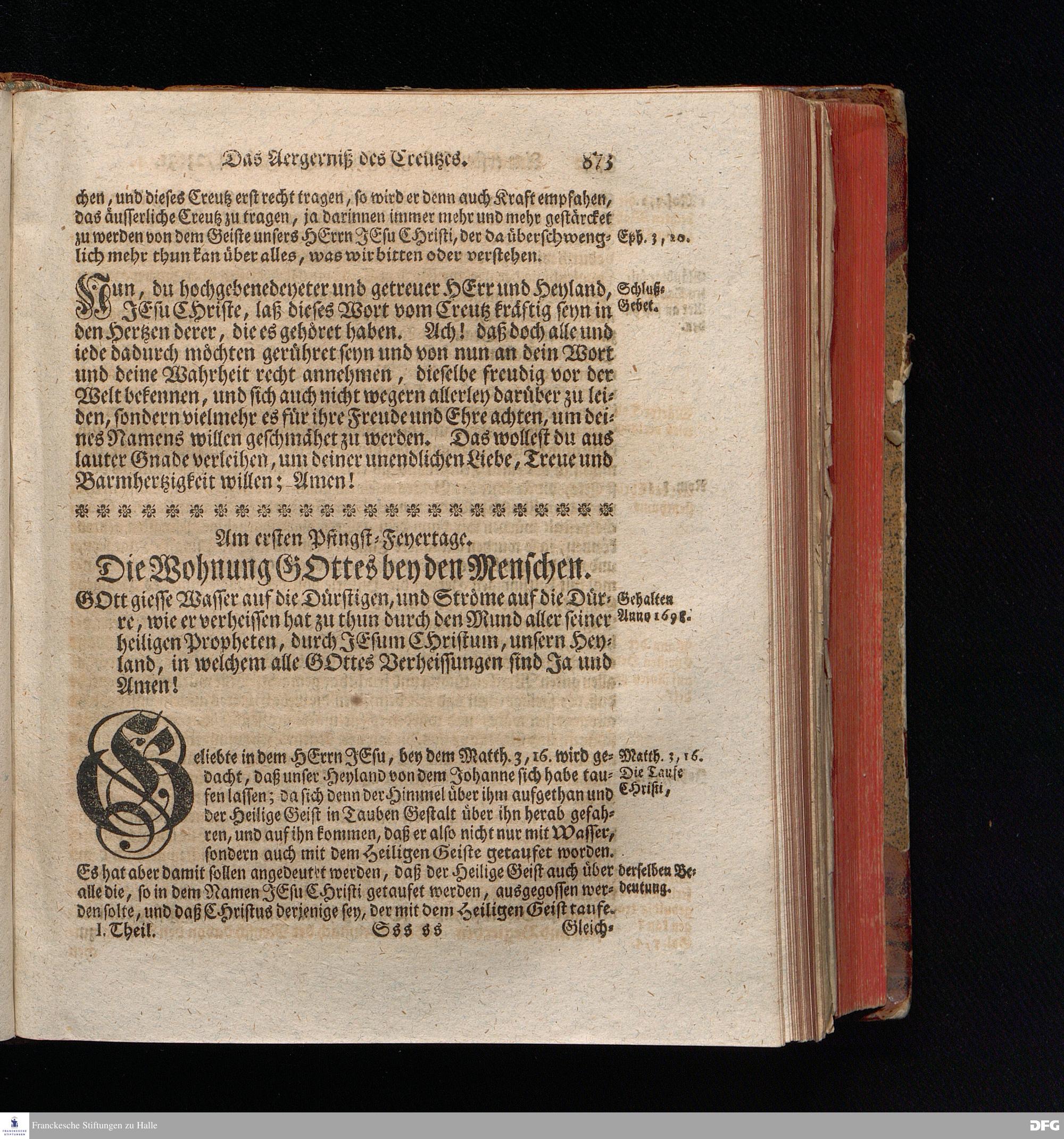 August Hermann Franckens, S.Theol.Prof.und Past. Sonn= Fest= und Apostel=Tags=Predigten, Darinnen Die zum wahren Christenthum gehörige nöthigste und vornehmste Materien abgehandelt sind; Nebst den darzu nützlichen Registern. Die achte EDITION. Mit Königl.Preuß.und Churfl.Brandenb.Privil. HALLE, gedruckt und verlegt im Wäysenhause / MDCCXLVI.