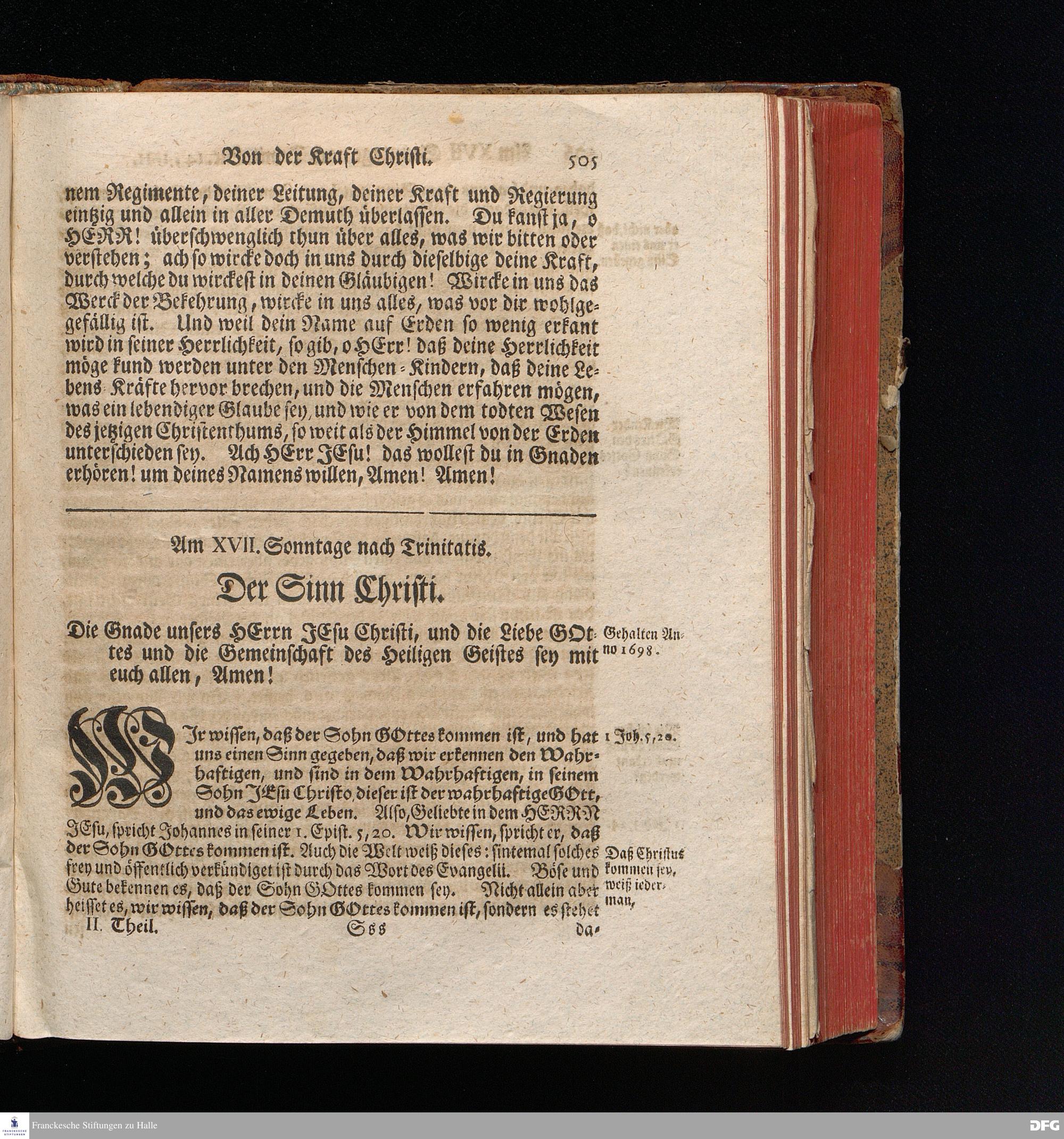 August Hermann Franckens, S.Theol.Prof.und Past. Sonn= Fest= und Apostel=Tags=Predigten, Darinnen Die zum wahren Christenthum gehörige nöthigste und vornehmste Materien abgehandelt sind; Nebst den darzu nützlichen Registern. Die achte EDITION. Mit Königl.Preuß.und Churfl.Brandenb.Privil. HALLE, gedruckt und verlegt im Wäysenhause / MDCCXLVI.