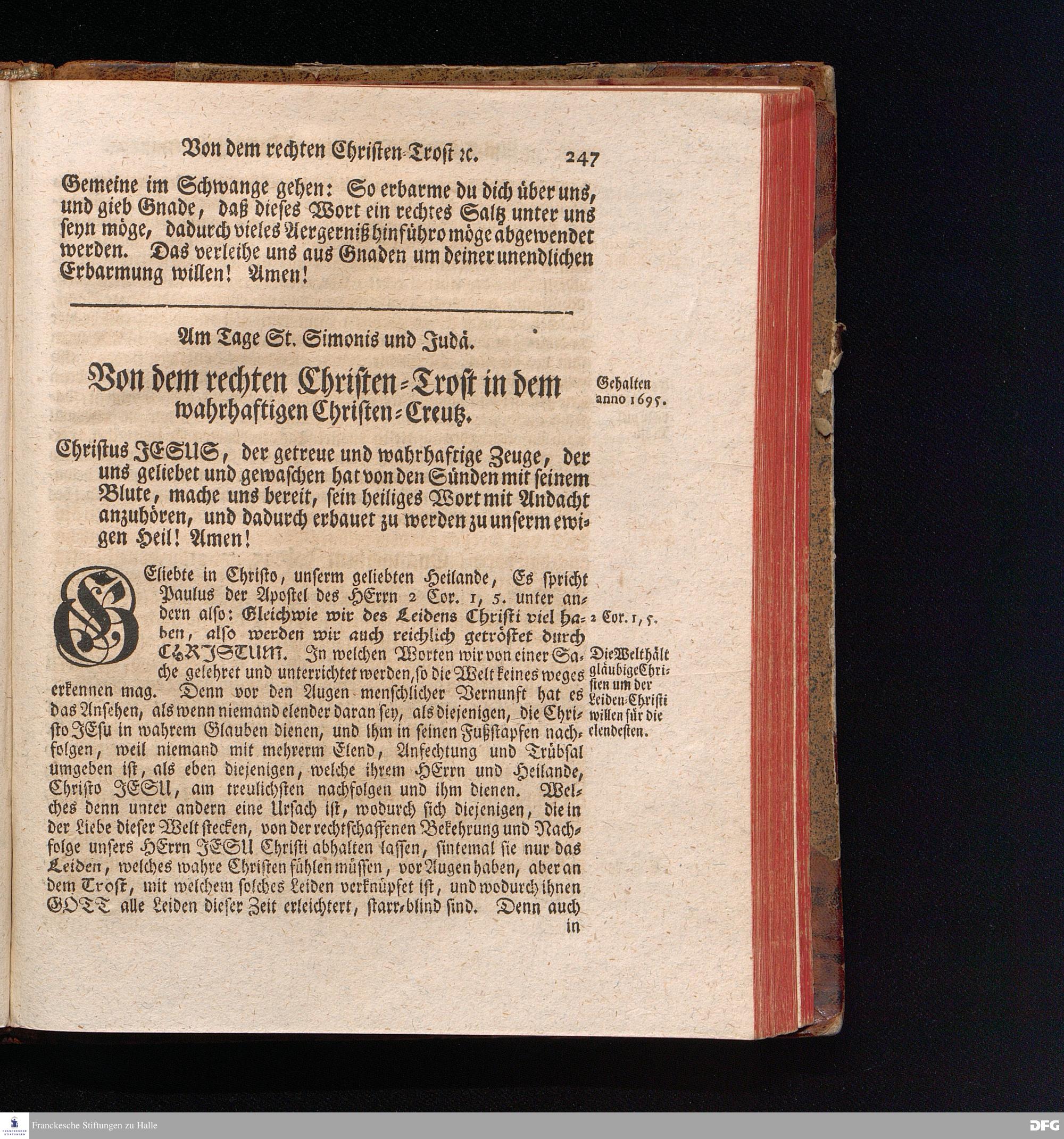 August Hermann Franckens, S.Theol.Prof.und Past. Sonn= Fest= und Apostel=Tags=Predigten, Darinnen Die zum wahren Christenthum gehörige nöthigste und vornehmste Materien abgehandelt sind; Nebst den darzu nützlichen Registern. Die achte EDITION. Mit Königl.Preuß.und Churfl.Brandenb.Privil. HALLE, gedruckt und verlegt im Wäysenhause / MDCCXLVI.