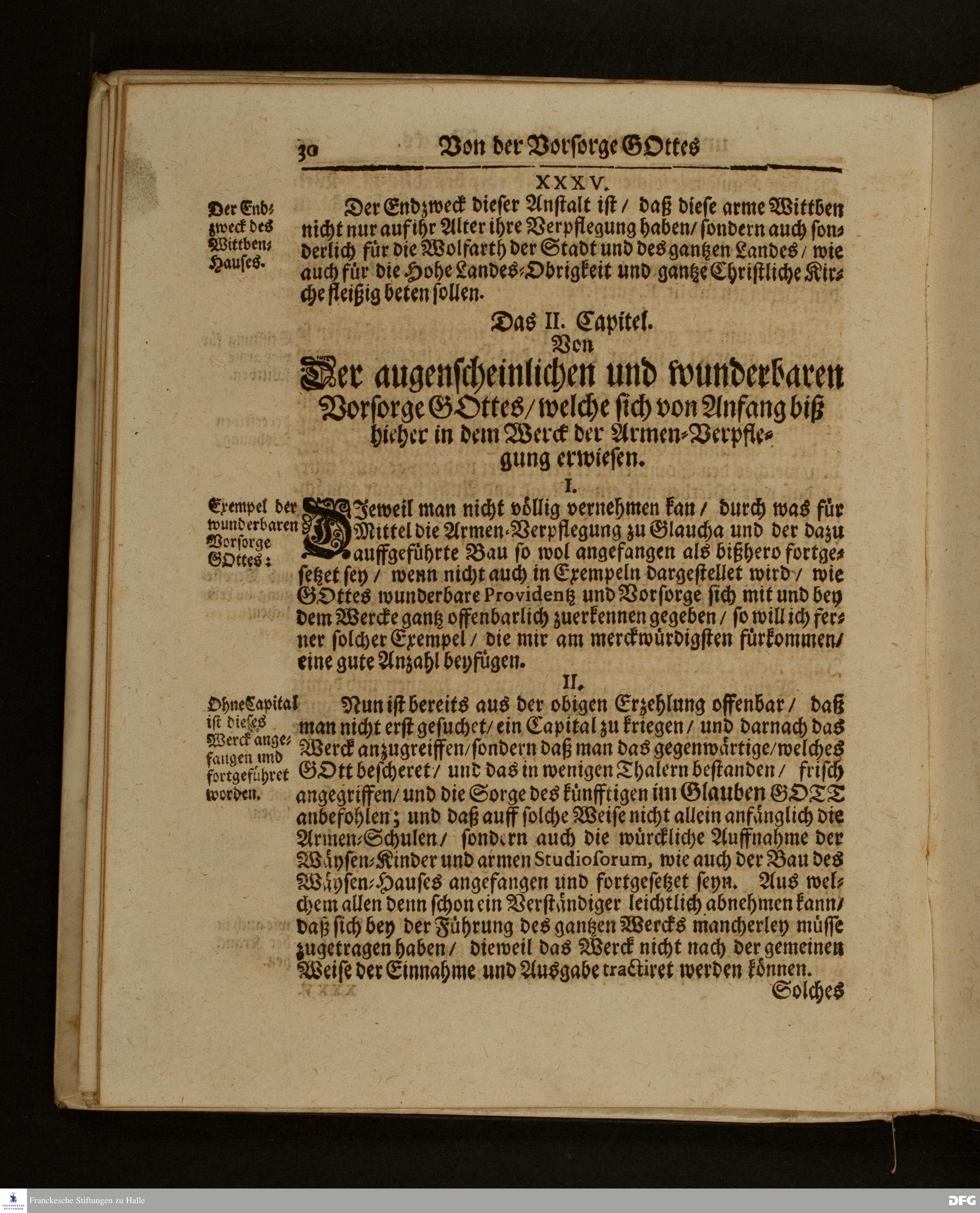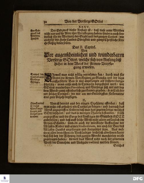 Die Fußstapffen Des noch lebenden und waltenden liebreichen und getreuen GOTTES / Zur Beschämung des Unglaubens / und Stärckung des Glaubens / Durch den Ausführlichen Bericht Vom Wäysen=Hause / Armen=Schulen / und übriger Armen=Verpflegung Zu Glaucha an Halle / Wie selbige fortgesetzet biß Ostern Anno 1701. Entdecket von August Hermann Francken / S.Th.Prof.Ord.und Past. [Spruch.] Mit Königl.Preußischen und Churfl.Brandenb.Privilegio. In Verlegung des Wäysen=Hauses zu Glaucha an Halle / 1701.