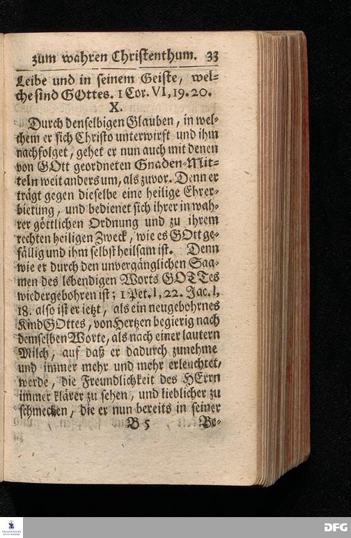 Die Lehre Vom Anfang Christliches Lebens / Bestehend in vier Theilen: I. In einer gründlichen Anleitung zu wahrer Busse und Glauben an GOTT. II. In einem einfältigen Unterricht, wie man die H.Schrift zu seiner wahren Erbauung lesen solle. III. In einer Schriftmäßigen Anweisung recht und GOTT gefällig zu beten. IV. In einer kurtzen Prüfung / ob man den wahren lebendigen Glauben an CHristum habe oder nicht. Die XIII.Auflage. HALLE, In Verlegung des Wäysenhauses, 1730.