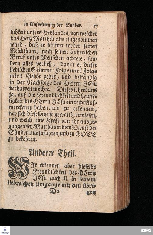 Die Freundlichkeit des HErrn JESU in Aufnehmung der Sünder / Am Tag des Apostels Matthäi 1717. Aus dem ordentlichen Evangelio Matth.IX, 9--13. In der Fürstl.Nassauischen Residentz Idstein bey der damaligen Durchreise in einer auf Verlangen gehaltenen Predigt vorgestellet von August Hermann Francken. [1720]